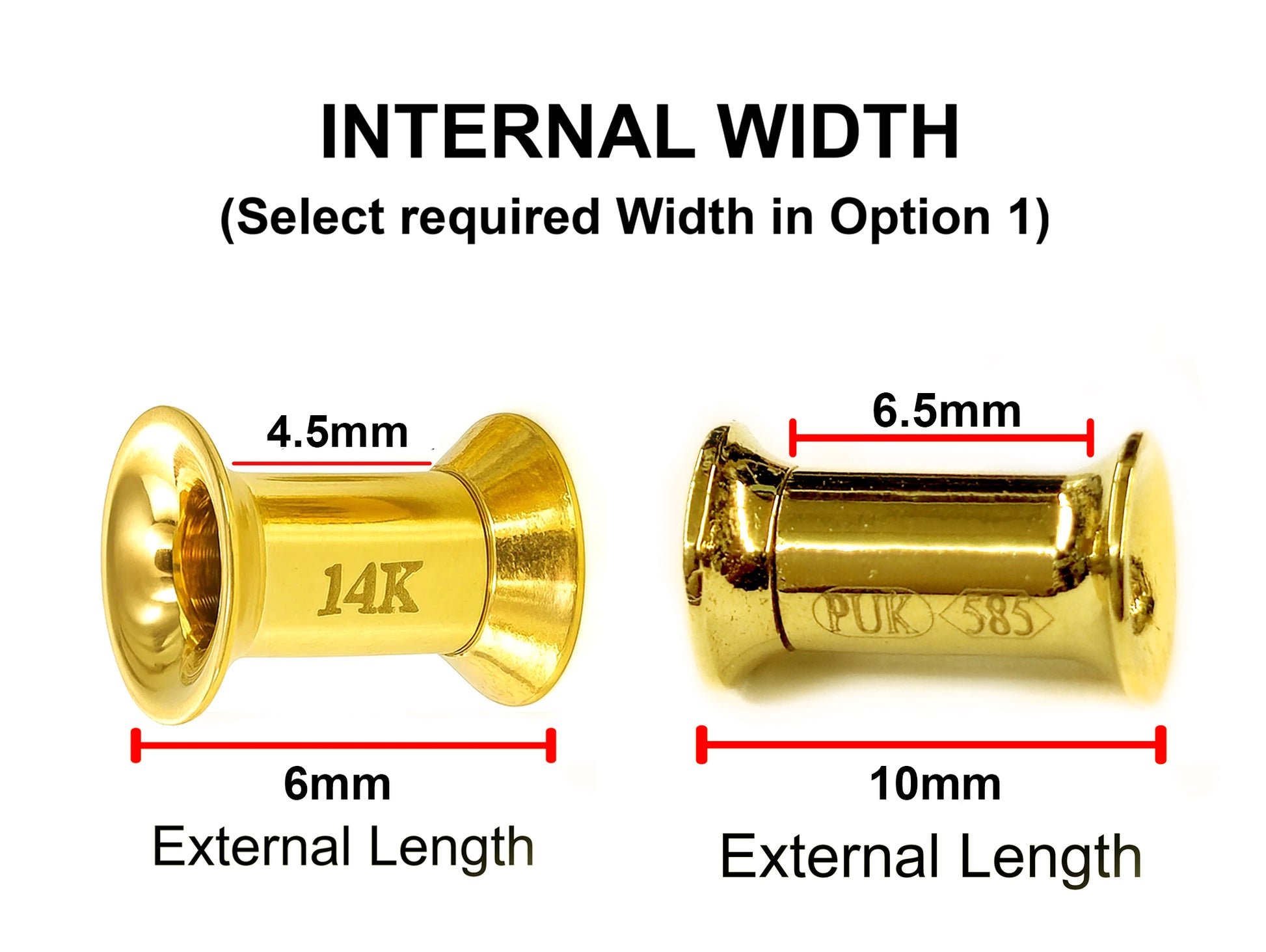 14K Gold Double Flare Plugs Stretching Kit, Ear gauges, Flesh Tunnels - Lobe Plugs - 1pc each order