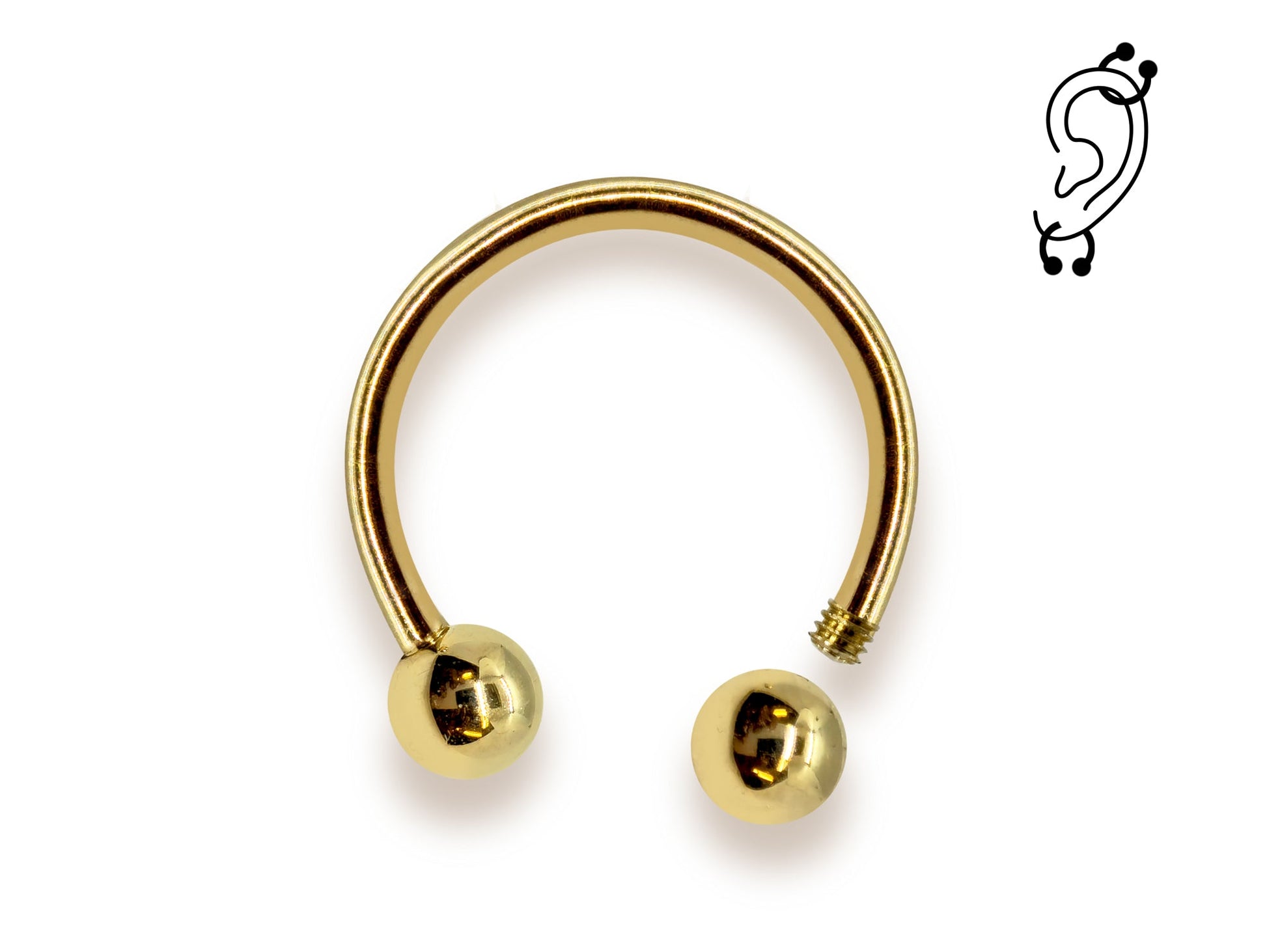 14K Solid Gold Horseshoe Barbell Earrings, Cartilage, Helix Ring 18G 16G Body Jewellery Piercing