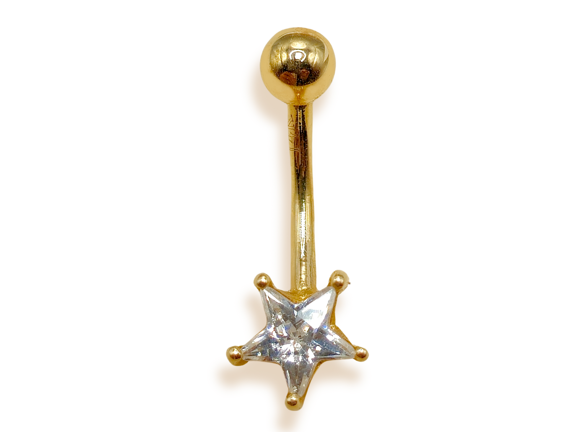14K Solid Gold Belly Button Ring - Star Shape Crystal Belly Ring - Gold Belly Bar made of 14K Gold - Fine Jewelry Hand Set and Hand Polished