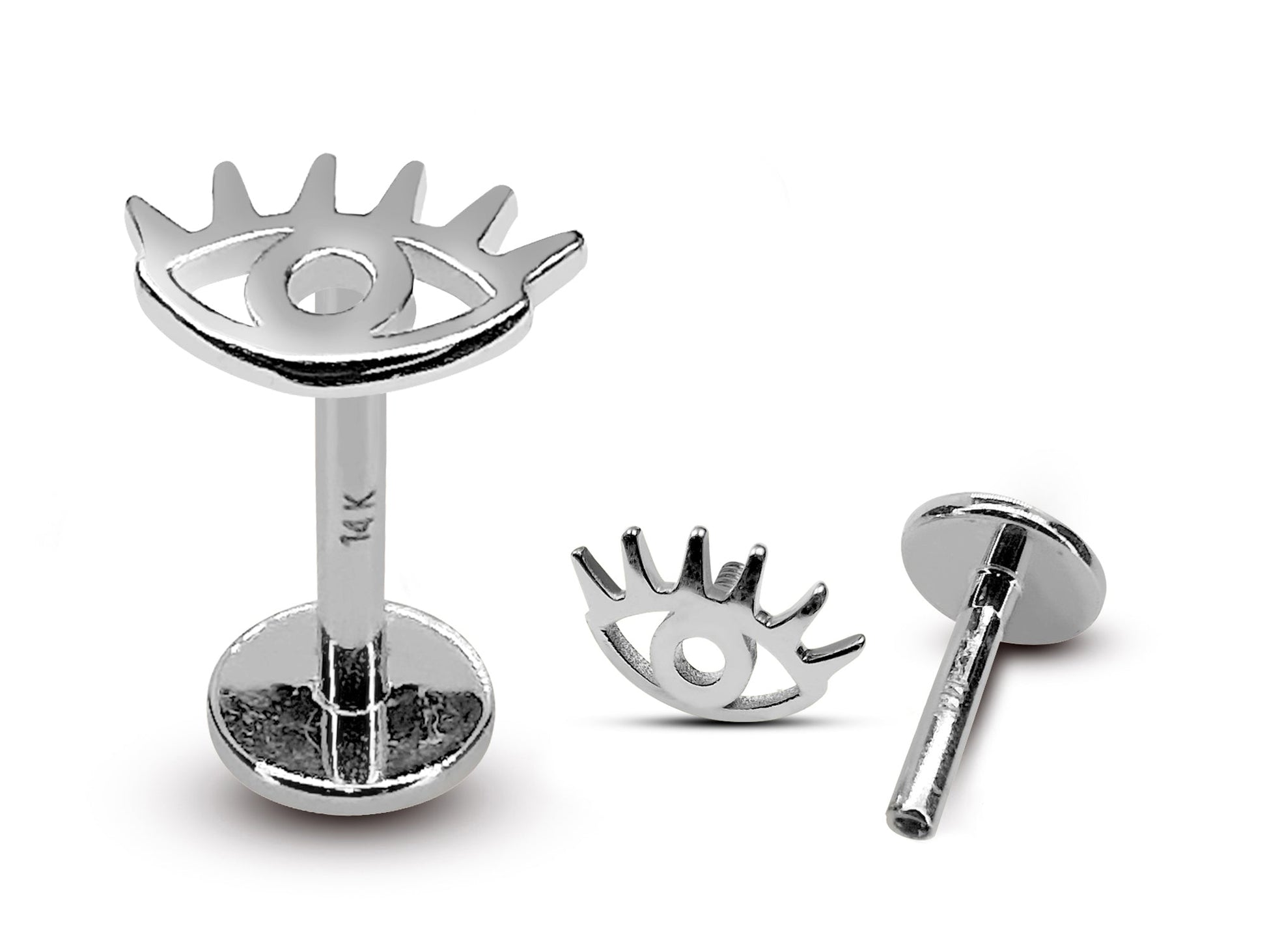 14K White Gold Evil Eye Tragus Earring, Labret Stud, Helix Cartilage Piercing - Internally Threading Body Jewellery Ear Piercing