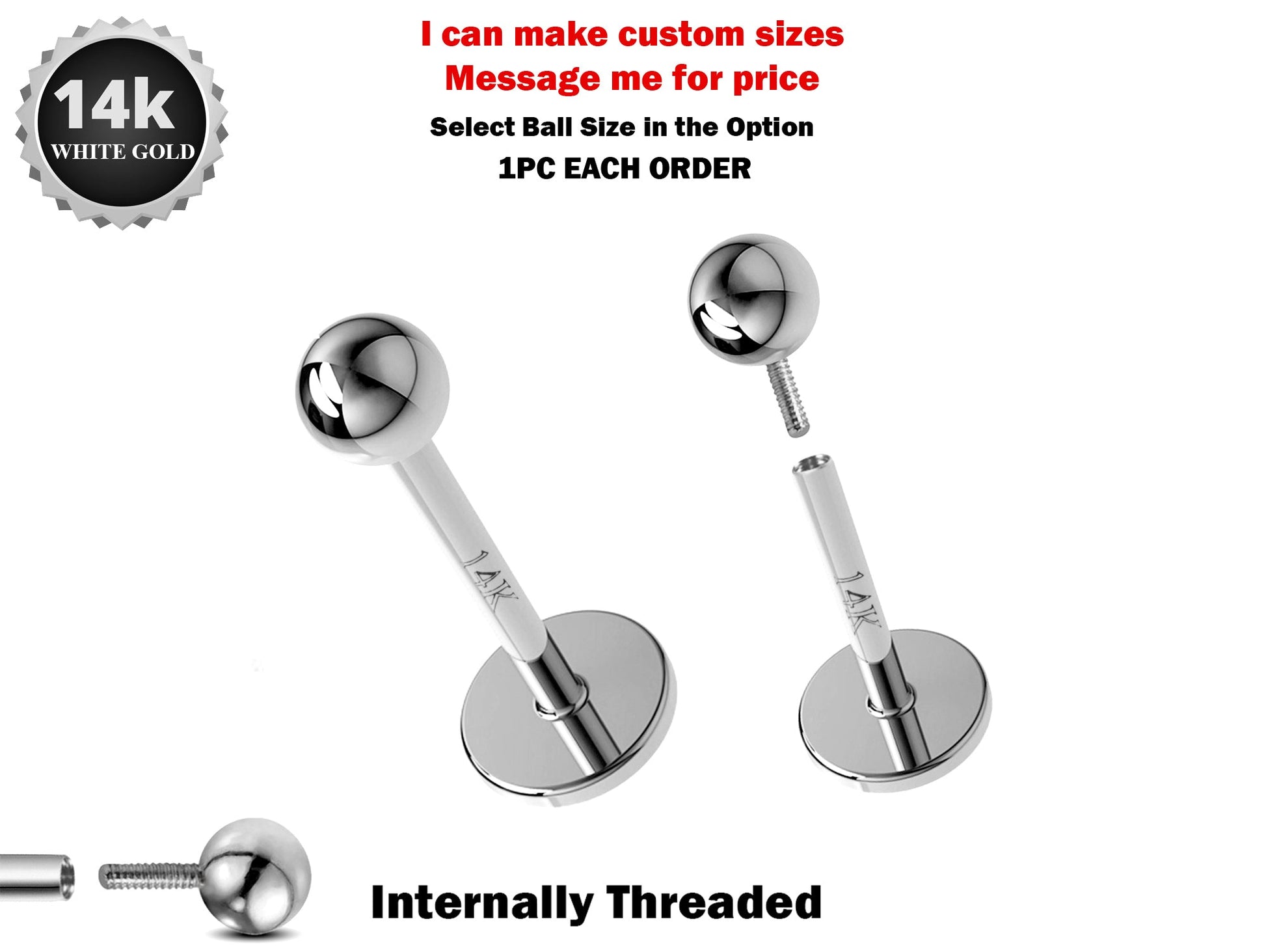 14K White Gold Internal Labret Lip Piercing -16G 14G - Body Jewelry for Tragus, Cartilage - Hand Made