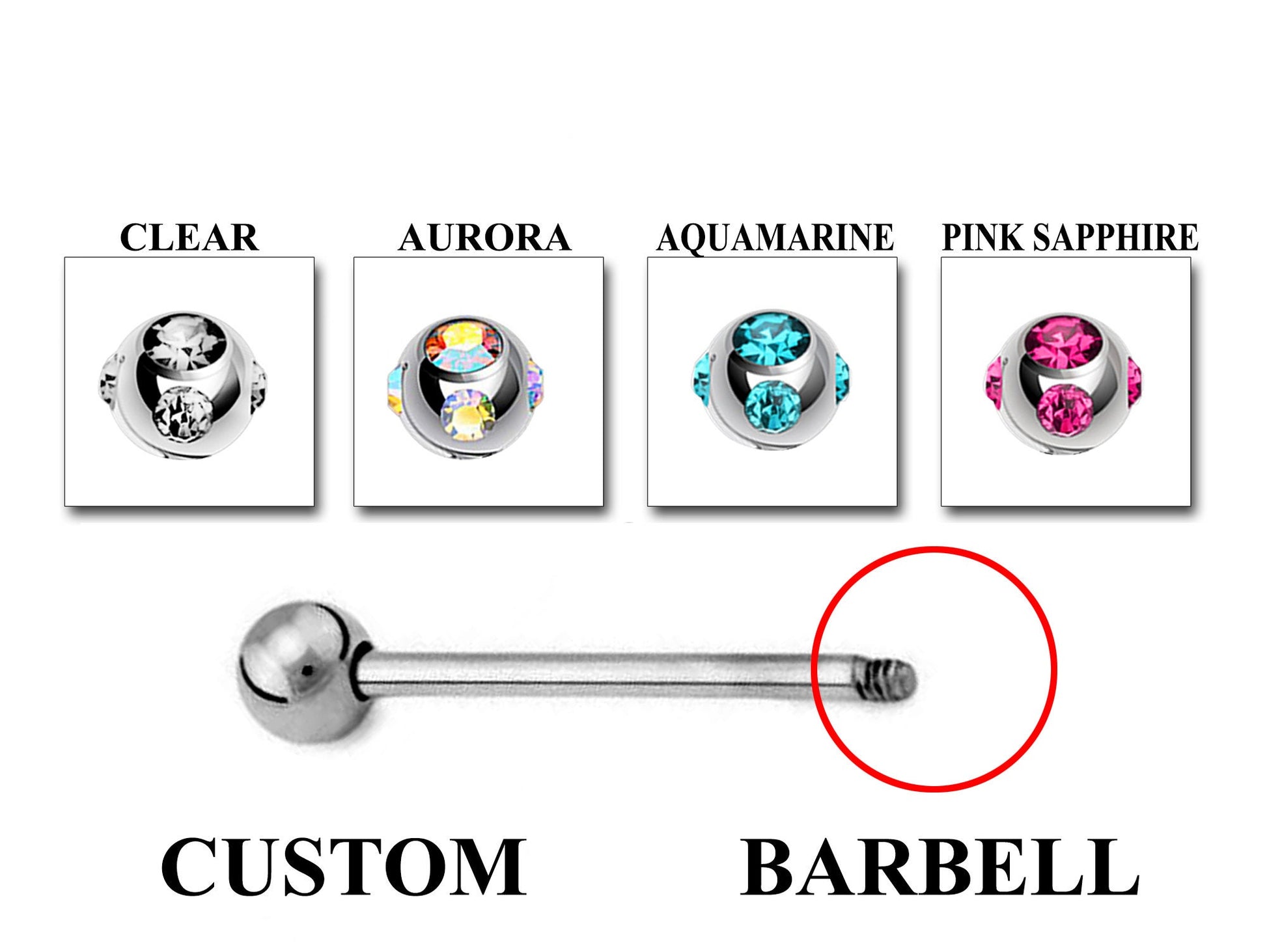 Barbell Earrings - Customize Barbell Piercing in 20g 18g 16g 14g - Spike - Gem Ball - Multi Stone - Disco Ball - Plain Ball.