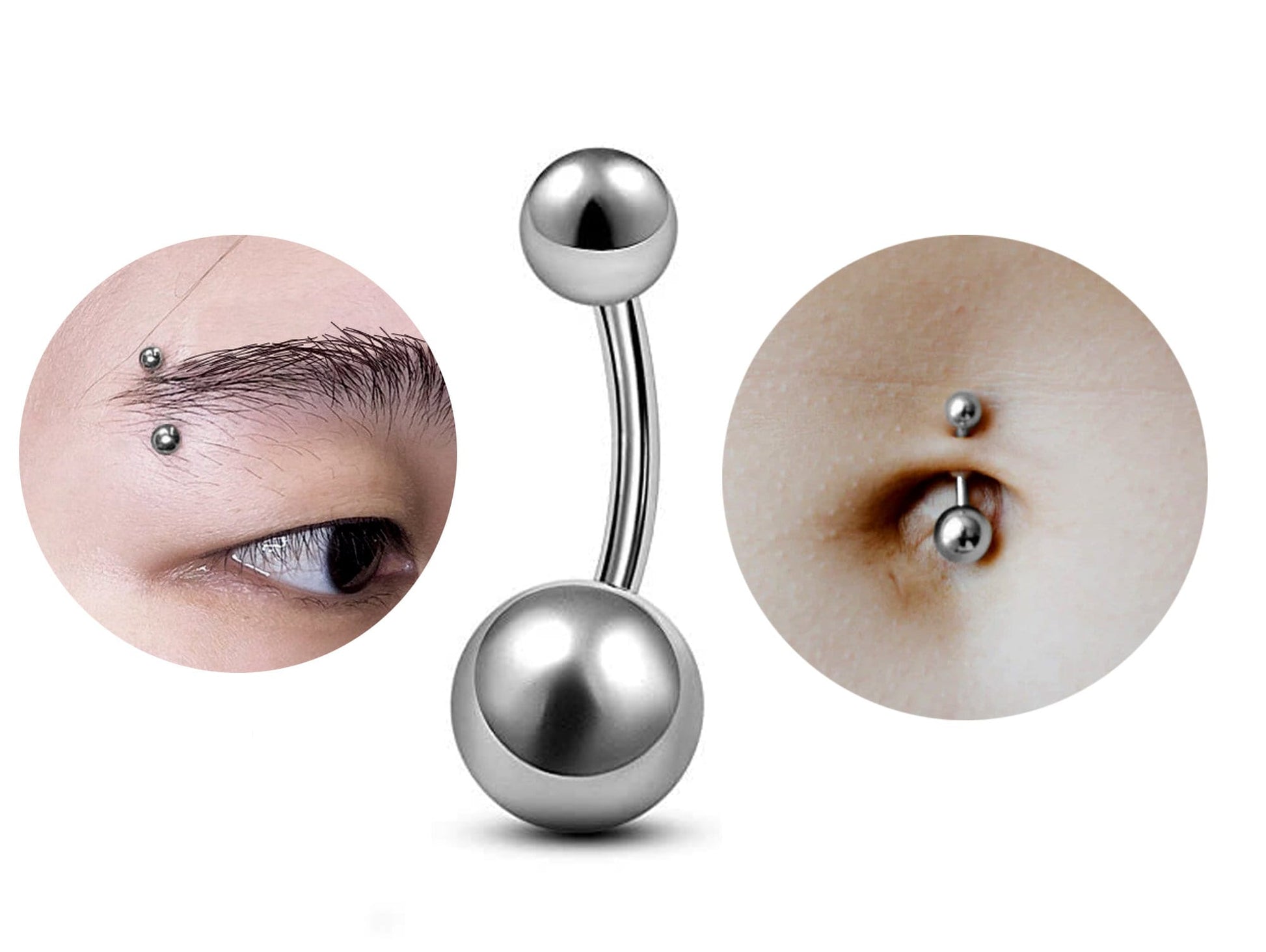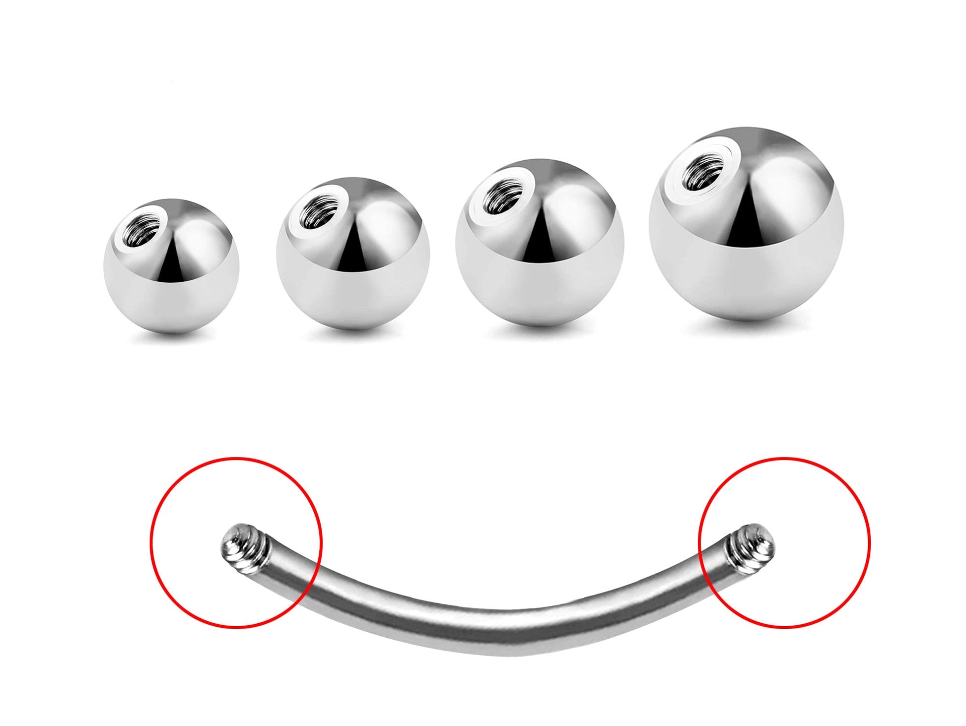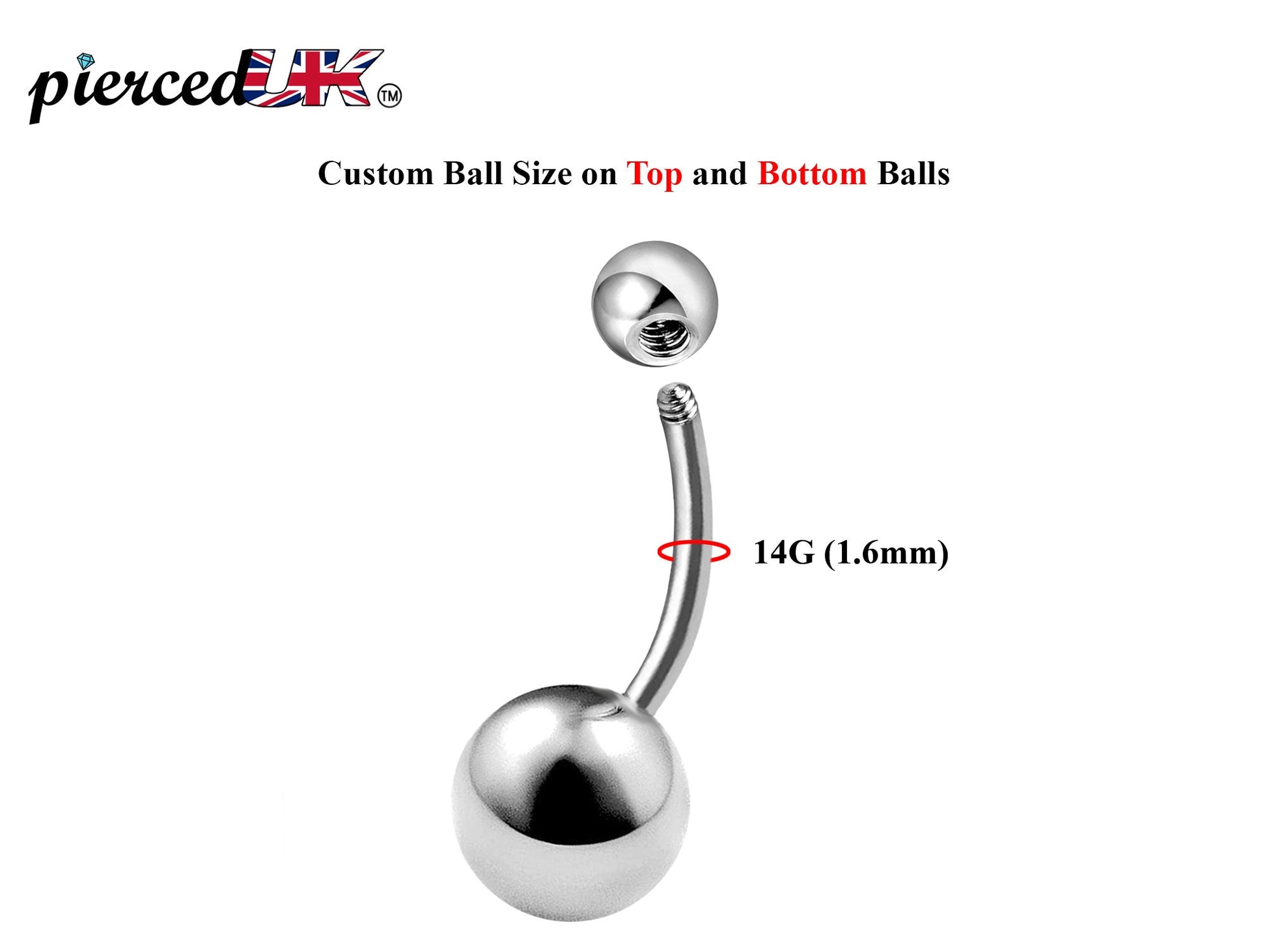 Belly Bar Plain Ball, Eyebrow Bar – (1.6mm) 14g Curved Barbell Piercing with Custom Ball Size 3mm to 8mm