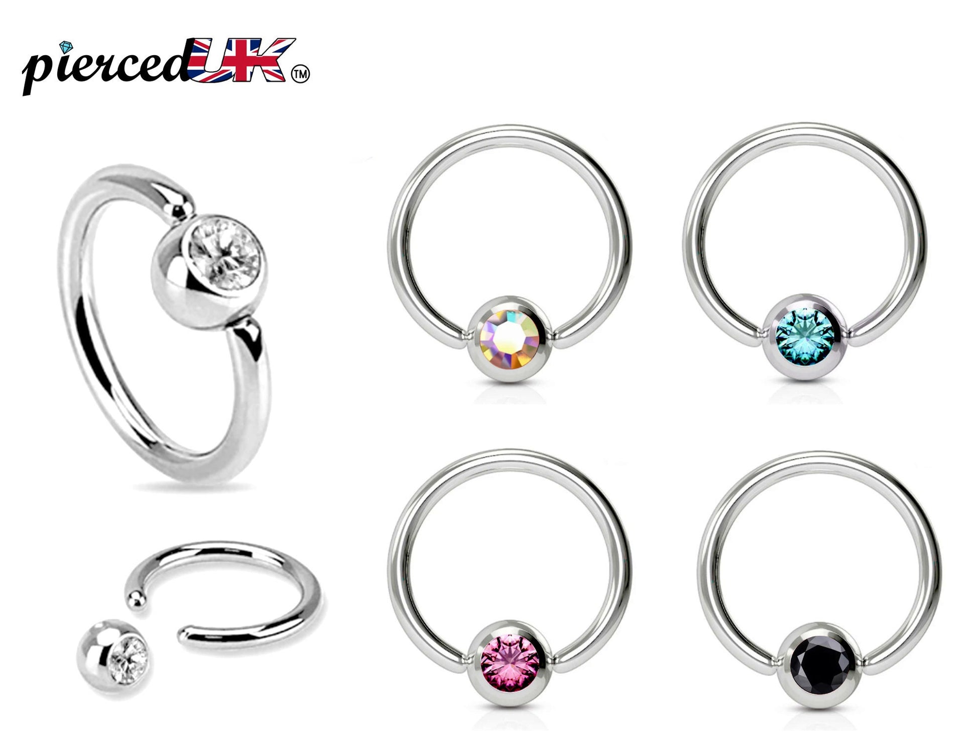 Captive Bead Ring, Captive Ball Earrings – Ball Closure Ball with Dimple Gem Ball - Piercing for Septum, Eyebrow, Nipple, Lip and More