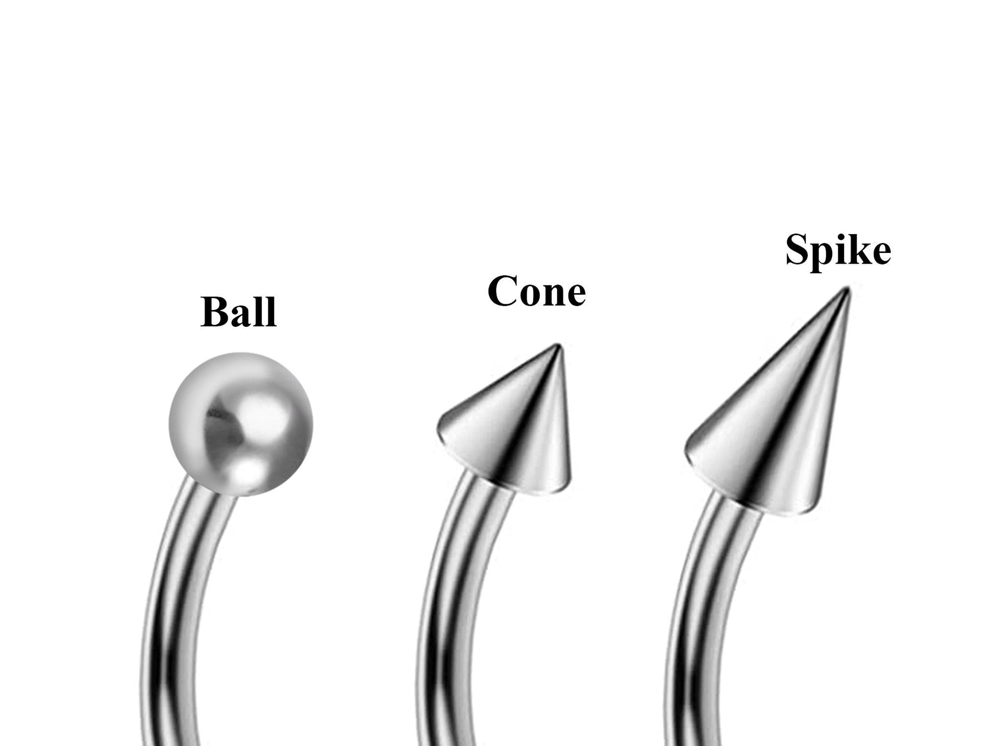 Curve Barbell, Daith Piercing – 3pcs Bent Barbell Spike / Ball / Cone Body Piercing, Earring, Daith, Helix, Cartilage and Tragus