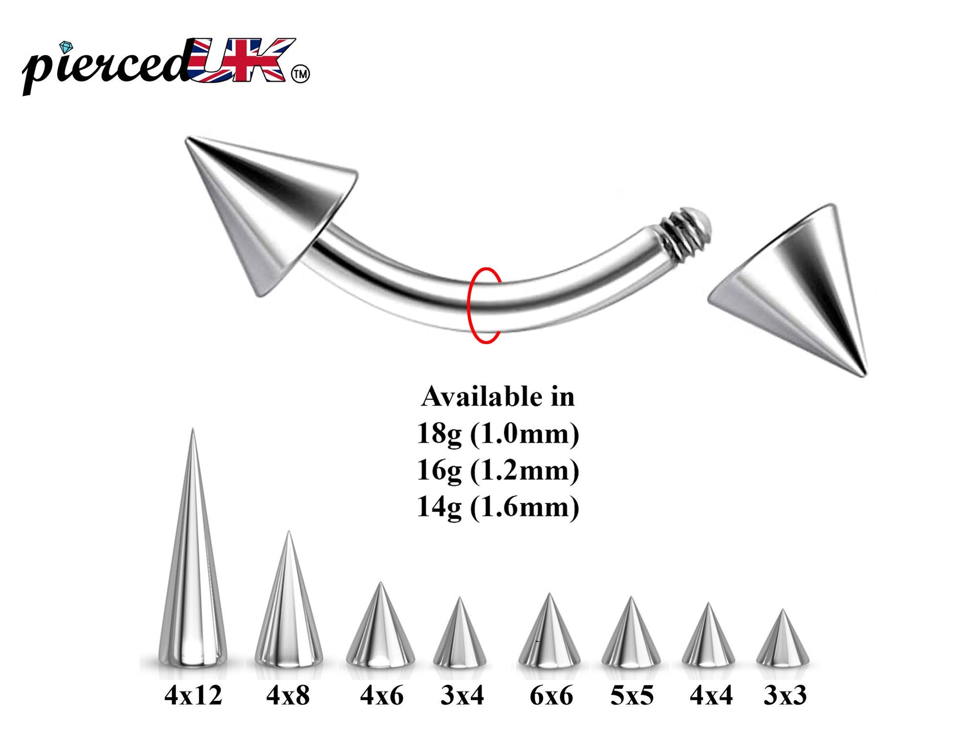 Curved Barbell Piercing, Daith Earring - Bent Spike Barbell Piercing - 18g 16g, 14g - Piercing for Eyebrow, Ear, Belly Ring, and More