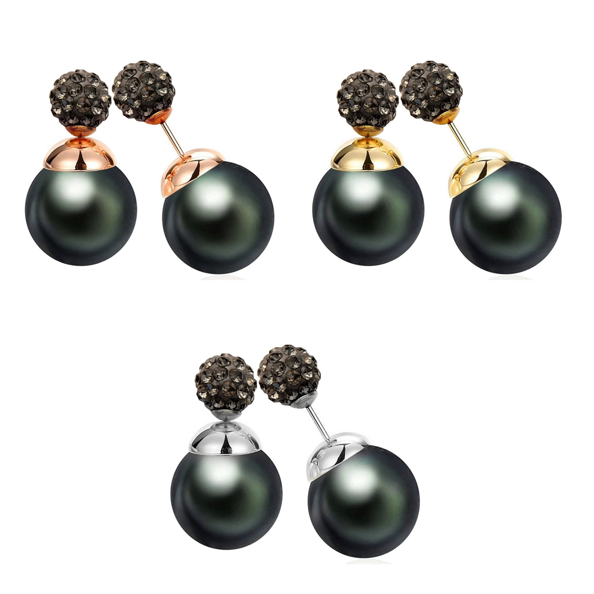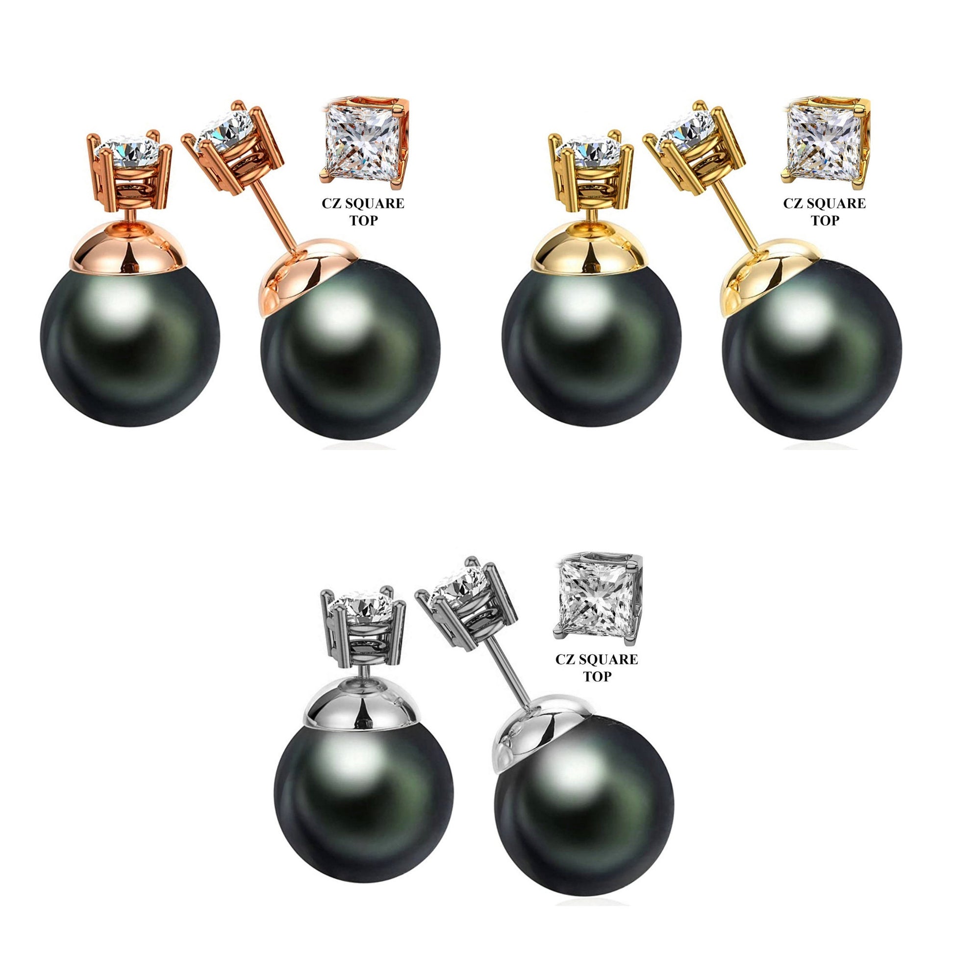 Double Sided Earrings, Double Pearl Dark Grey - Custom Front Back Earrings - Pearl Ear Jacket - 2 in 1 Earrings - Silver, Gold and Rosegold