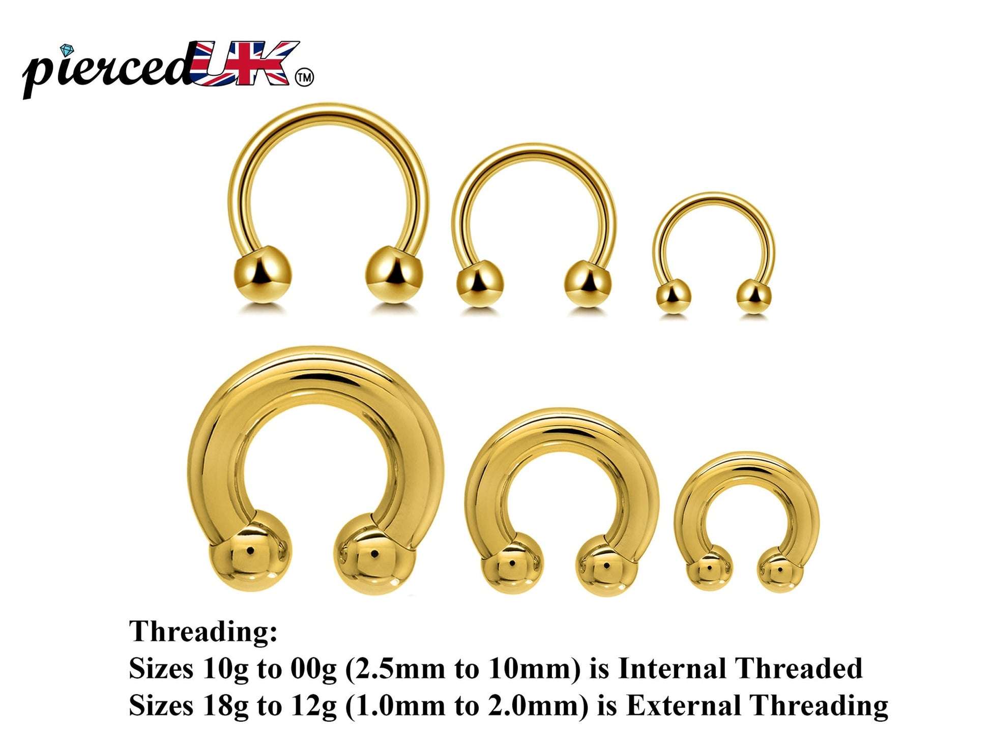 Gold Horseshoe Earrings, Nose Ring - Horseshoe Septum Ring - 00G, 0G, 1G, 2G, 4G, 6G, 8G, 10G, 12G, 14G 16G, 18G - Size 6mm to 19mm