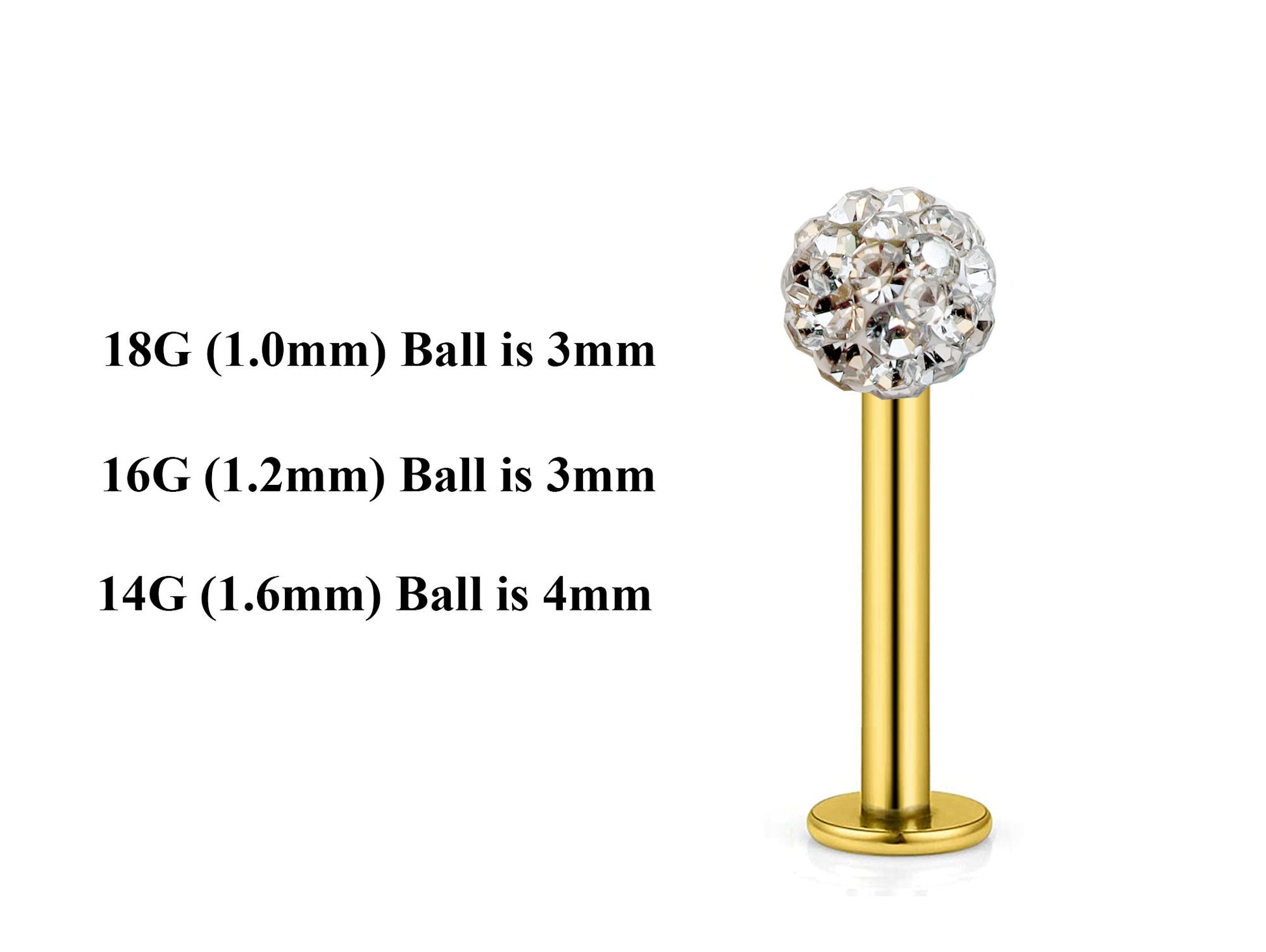 Gold Labret Stud, Labret Piercing – Custom Lip Labret 18g 16g 14g Labret Piercing for Lip, Chin and More – Choose Top Ball in the Options