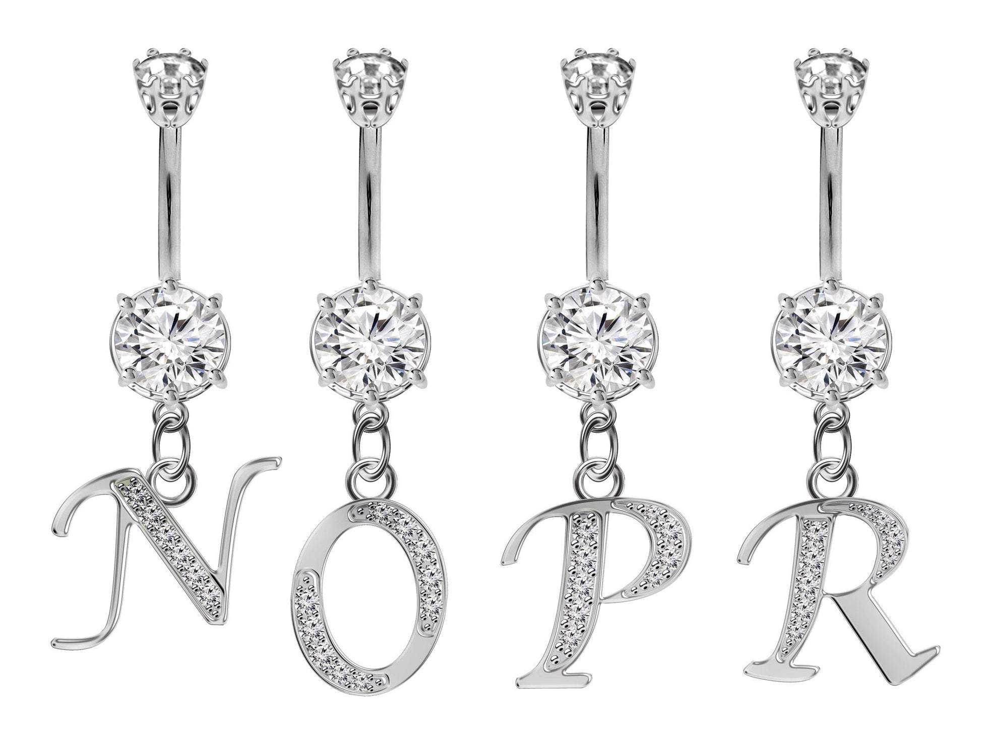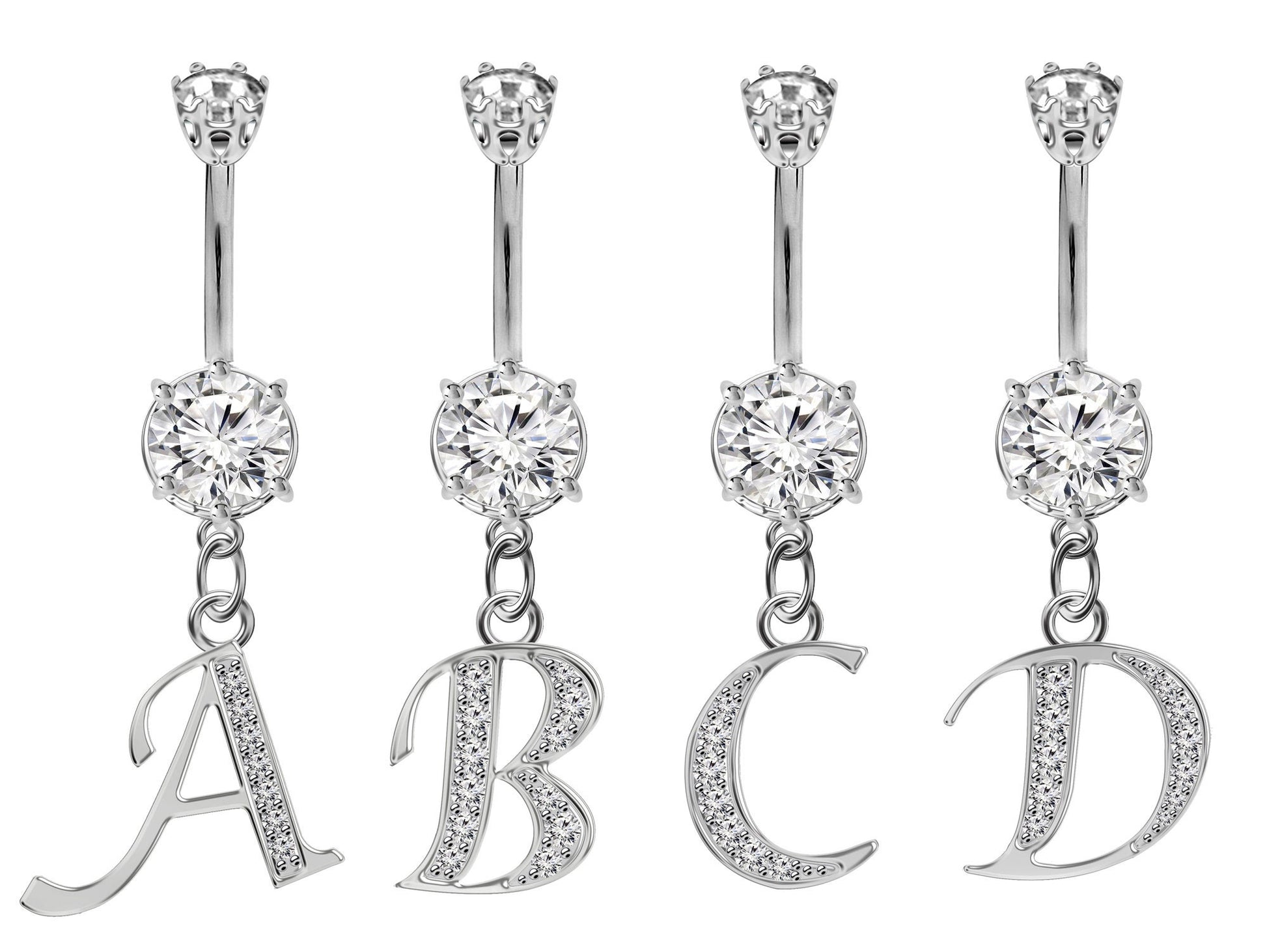 Initial Belly Ring, Belly Button Rings with Silver Dangle Alphabet Letter A-Z - Belly Bar length is 10mm - thickness is 14g (1.6mm)