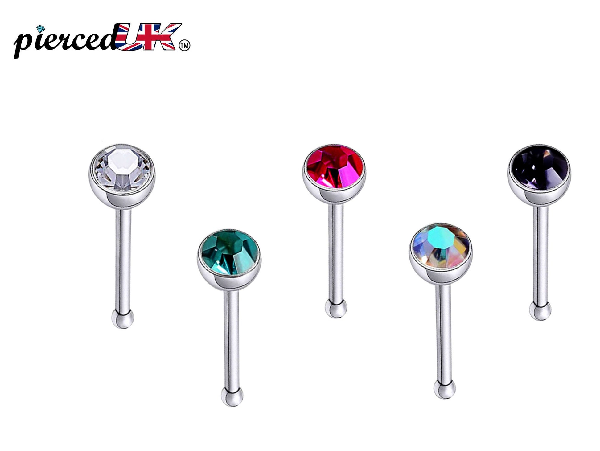 Nose Bone Stud, Nose Stud - Nose Pin with CZ Crystals - Nose Piercing Size 20G 18G - Nostril Ring, Nose Jewelry, Straight Nose Pin