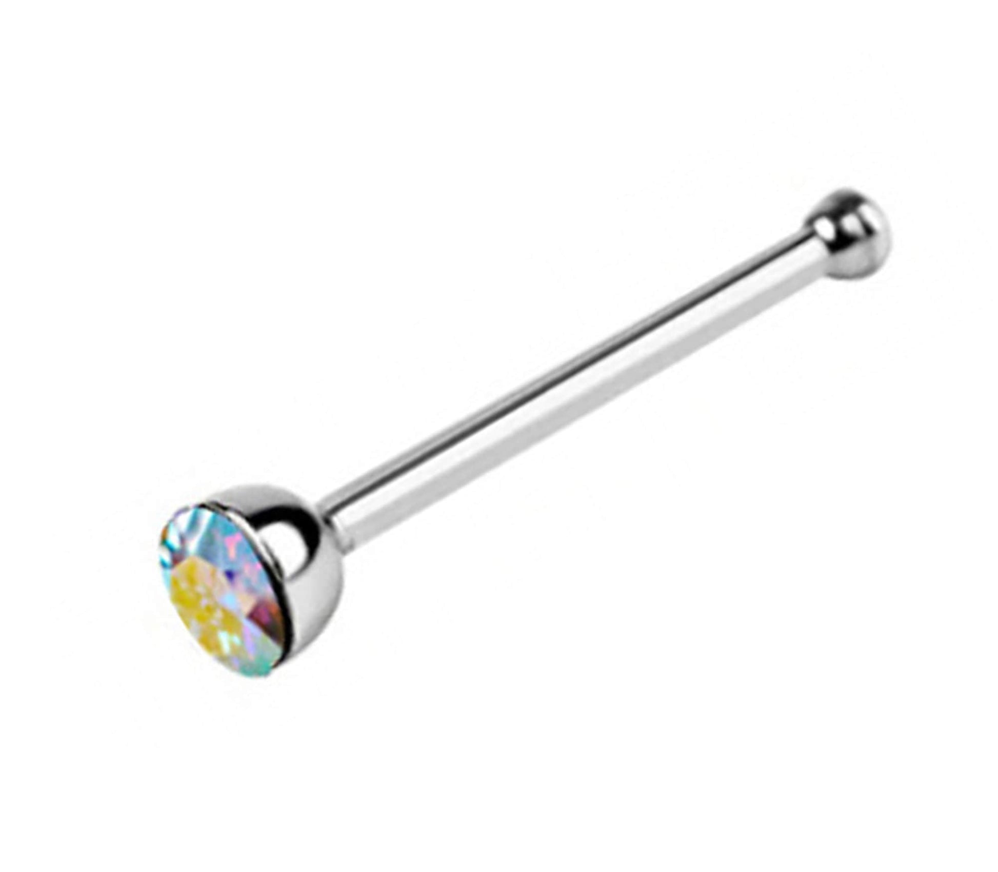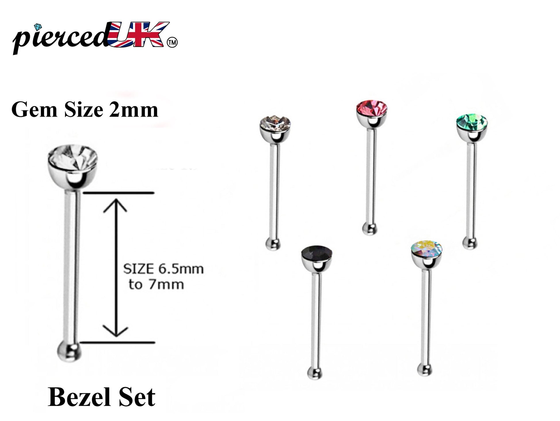Nose Piercing, Nose Pin - Nose Bone Stud with Bezel Set CZ Crystals - Nose Ring Size 24g 20g 18g