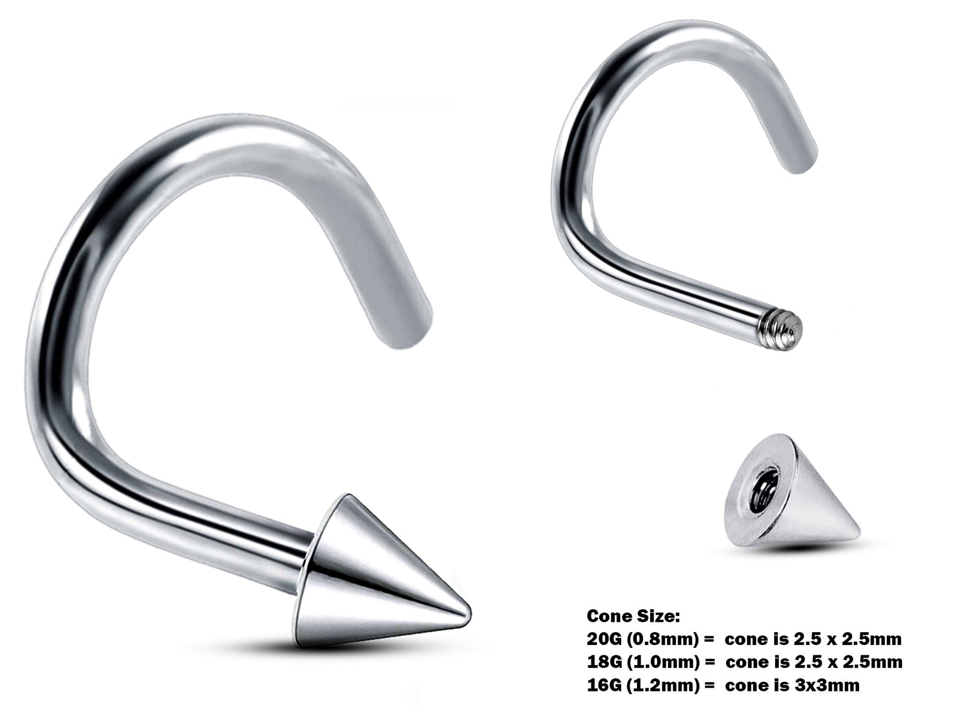 Nose Studs, Nose Ring - 20g, 18g, 16g Nostril Screw Ring with Ball Cone Spike - Nose Piercing, Nose Jewelry, Nose Pin