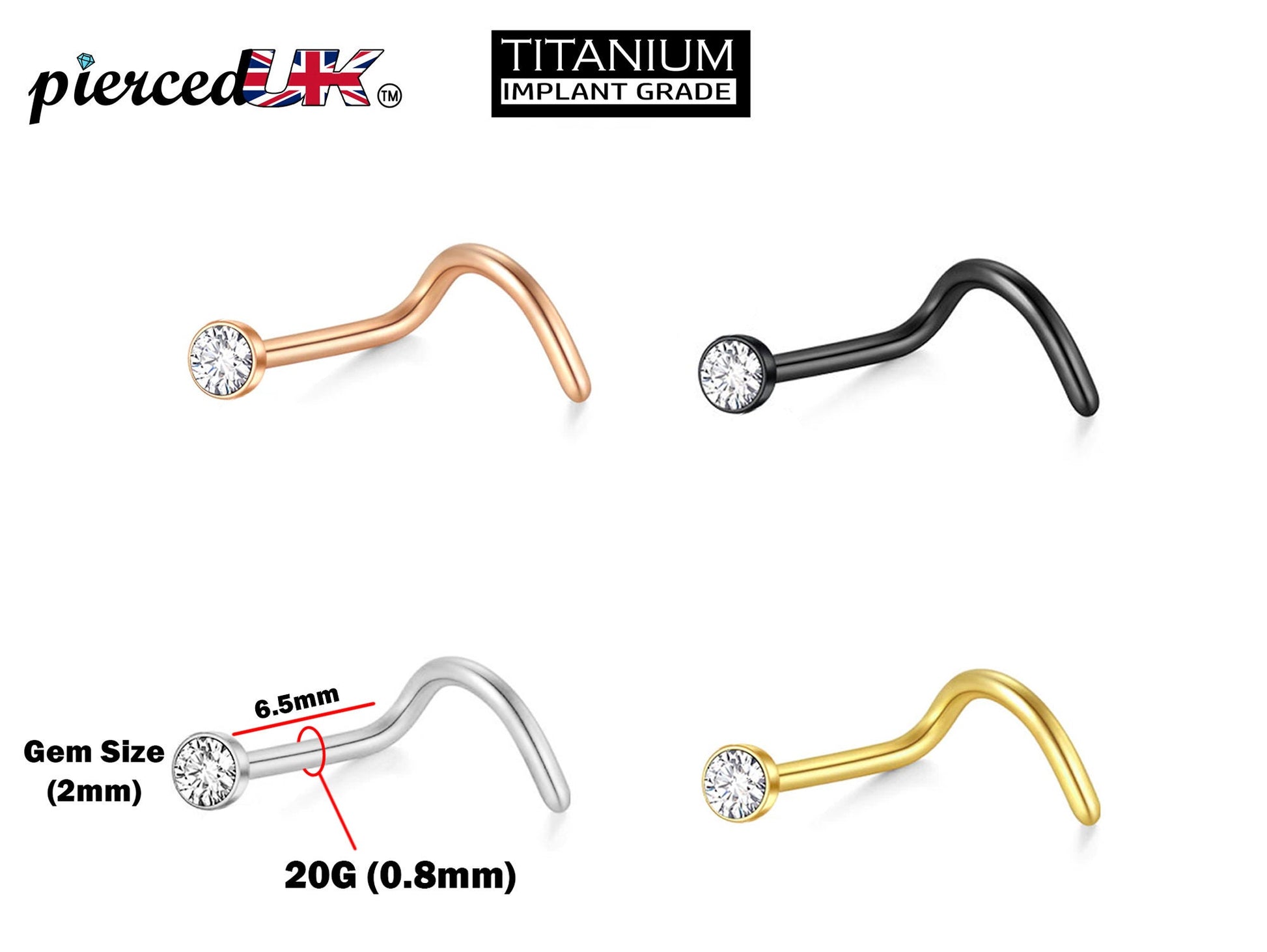 Nostril Jewellery with Stone CZ Crystals 20G (0.8mm) Titanium Fixed Nose Piercing- Stone Size 2mm - Nasallang Jewelry, Nose Ring, Nose Screw