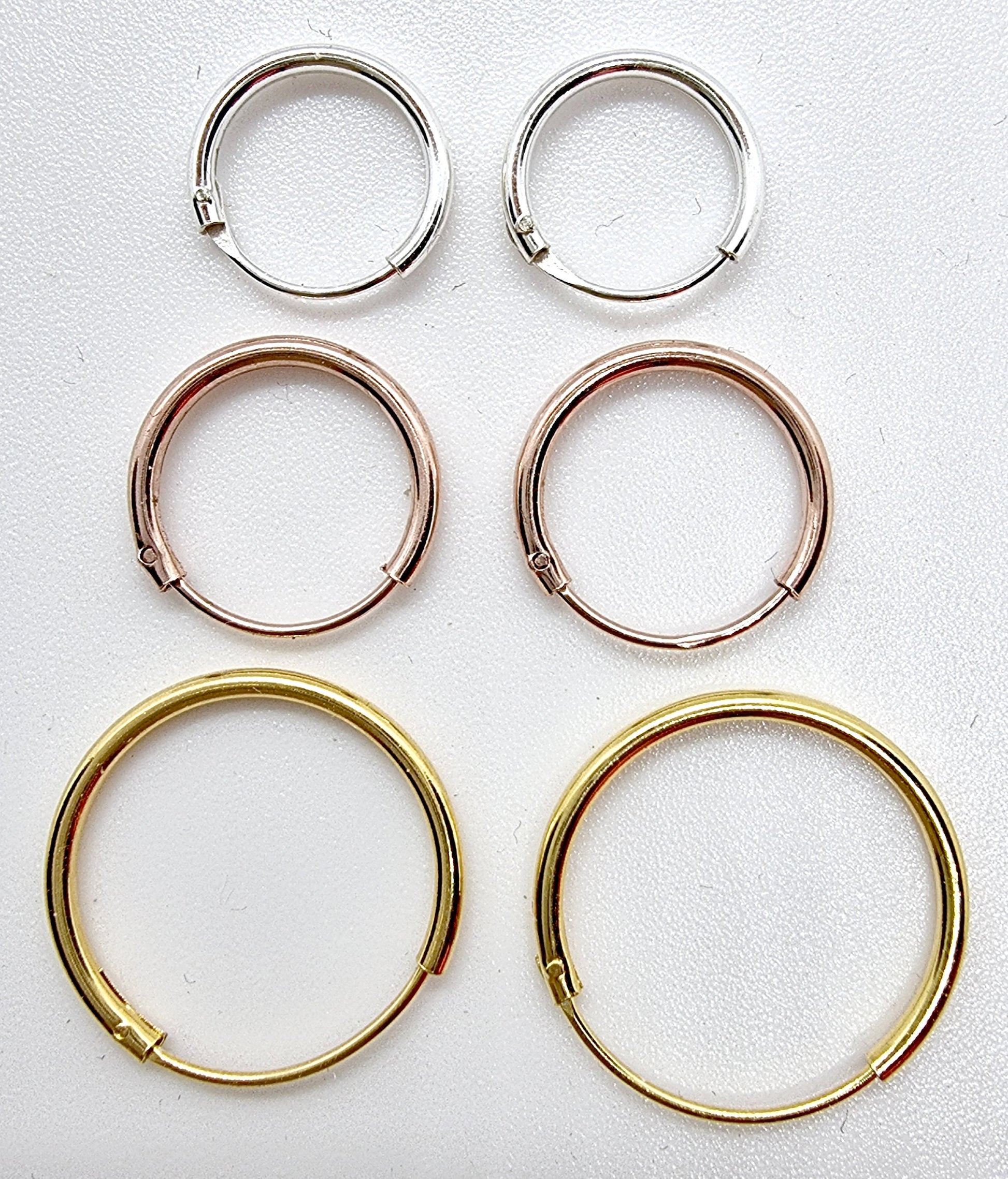 Rose Gold Hoop Earrings, Huggie Earrings – Clip-on Sleeper Earrings Size 8mm to 60mm – Earrings for Ear Lobe, Cartilage, Dainty, Helix etc.
