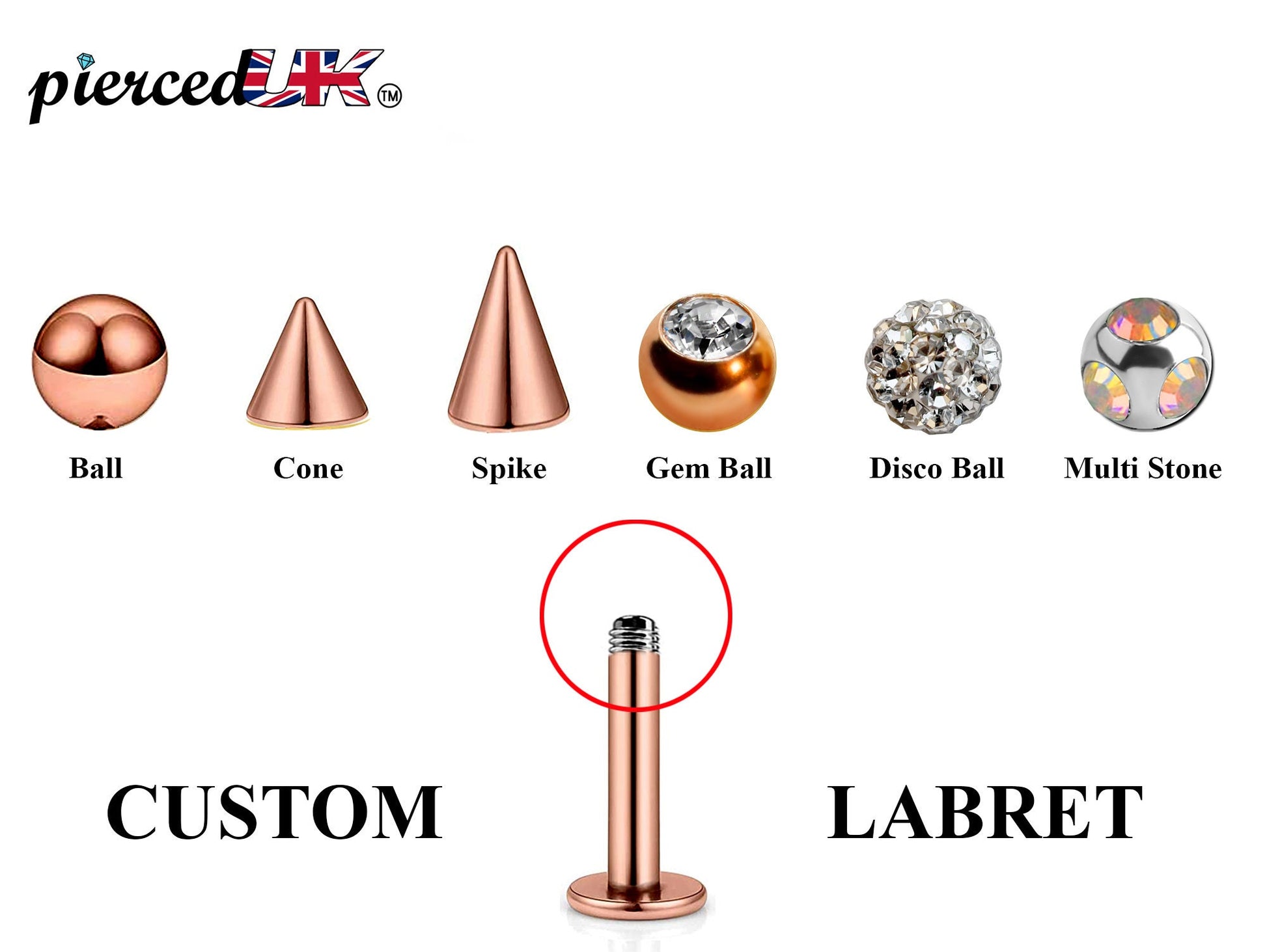 Rose Gold Labret Stud, Labret Piercing – Custom Lip Labret 18g 16g 14g Labret Piercing for Lip, Chin – Choose Top Ball in the Options