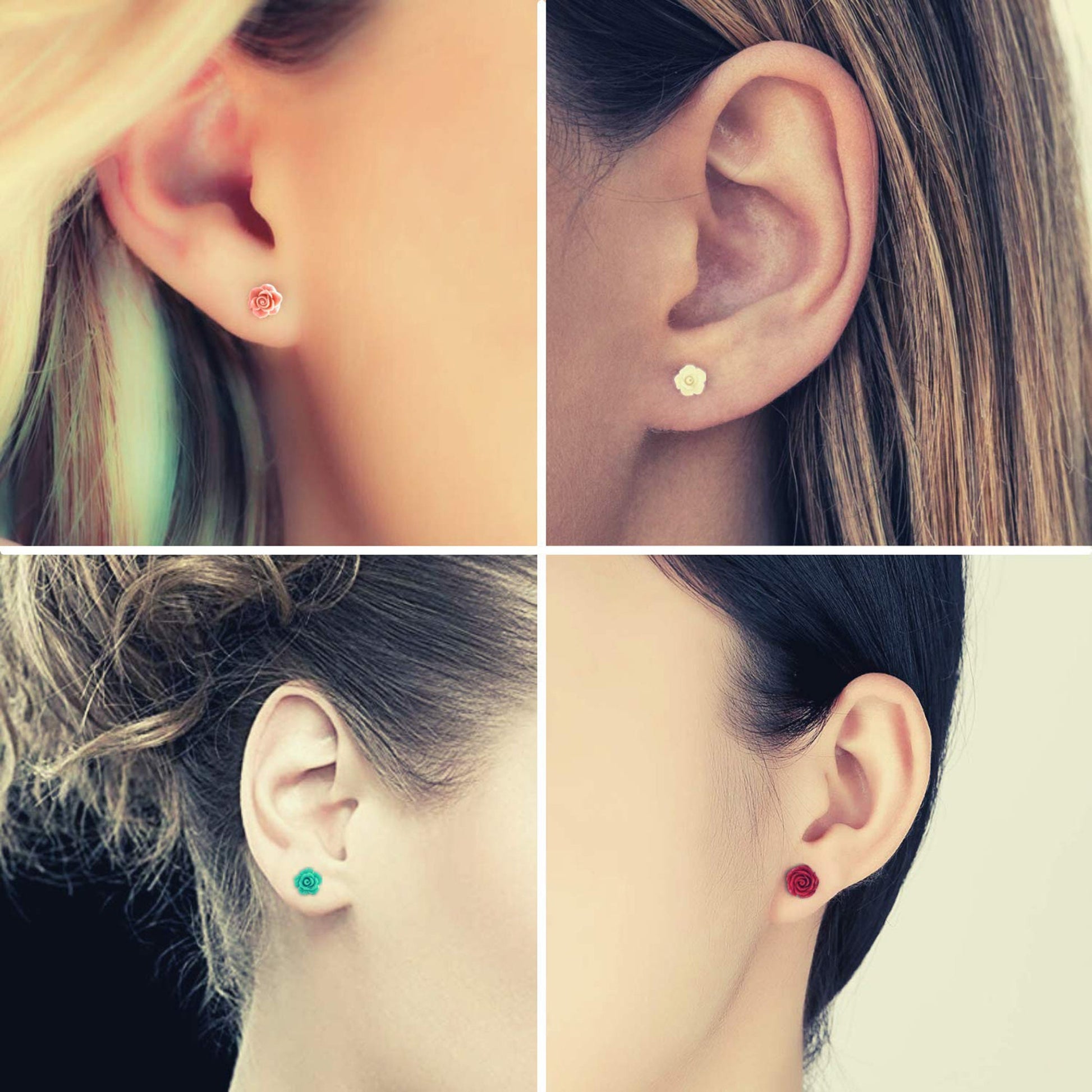 Rose Stud Earrings - Lovely Rose design and Look Really Pretty - Resin Rose Flower Earrings for all Occasions