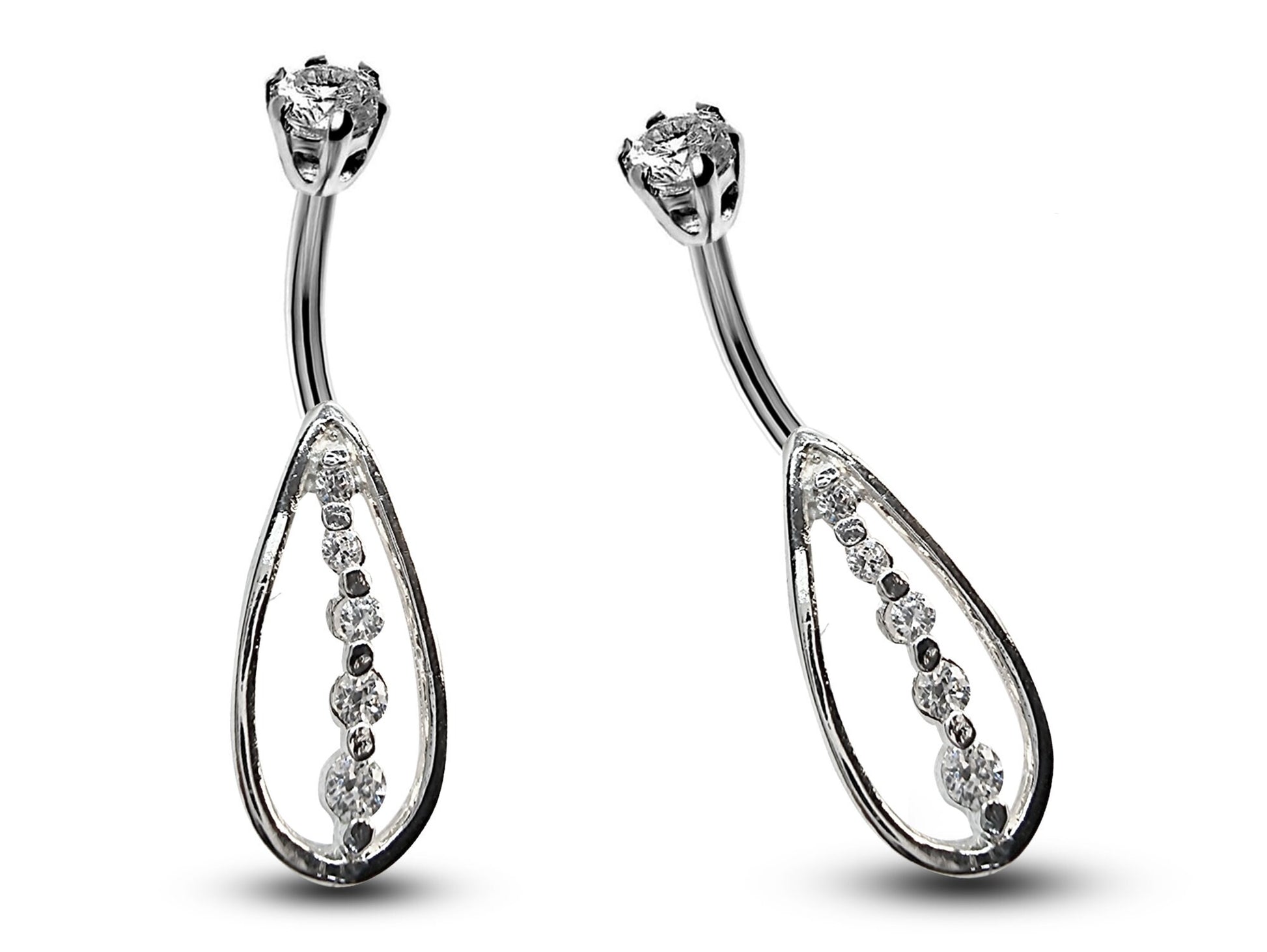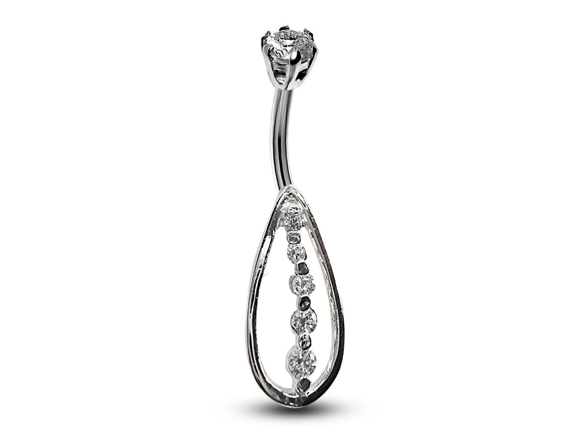 Silver Belly Button Piercing, Belly Bars - Tear Drop Belly Ring with Round Quality CZ Crystals - Navel Ring - 16g (1.6mm) Length is 10mm