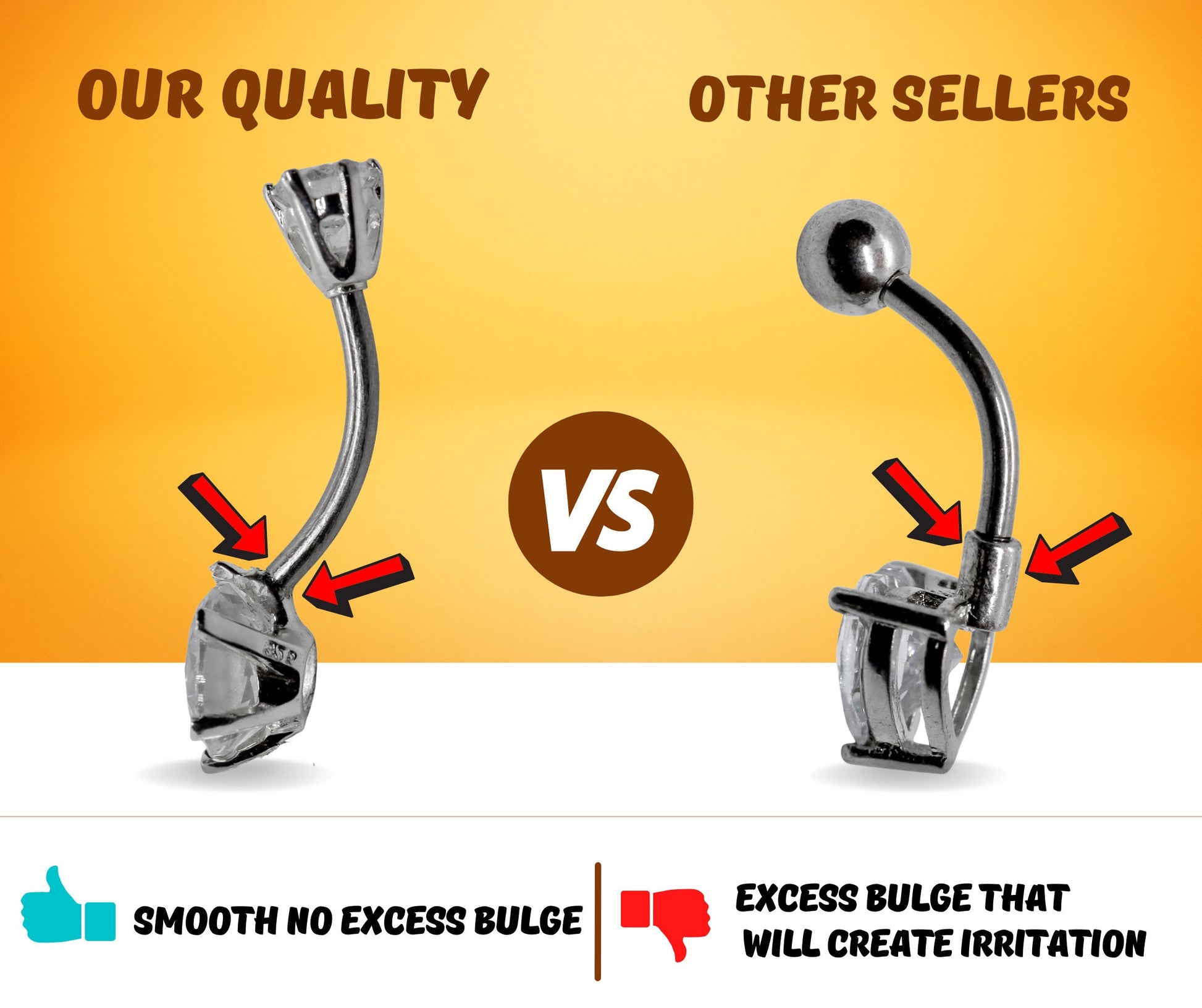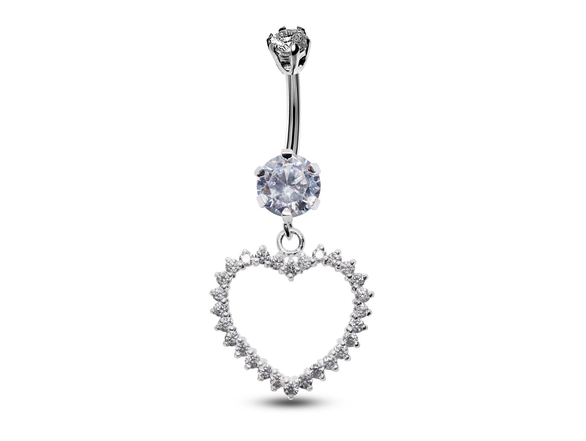 Silver Belly Button Ring, Belly Bars- Dangle Open Heart Belly Ring with High Quality Crystals - Navel Ring - 16g (1.6mm)