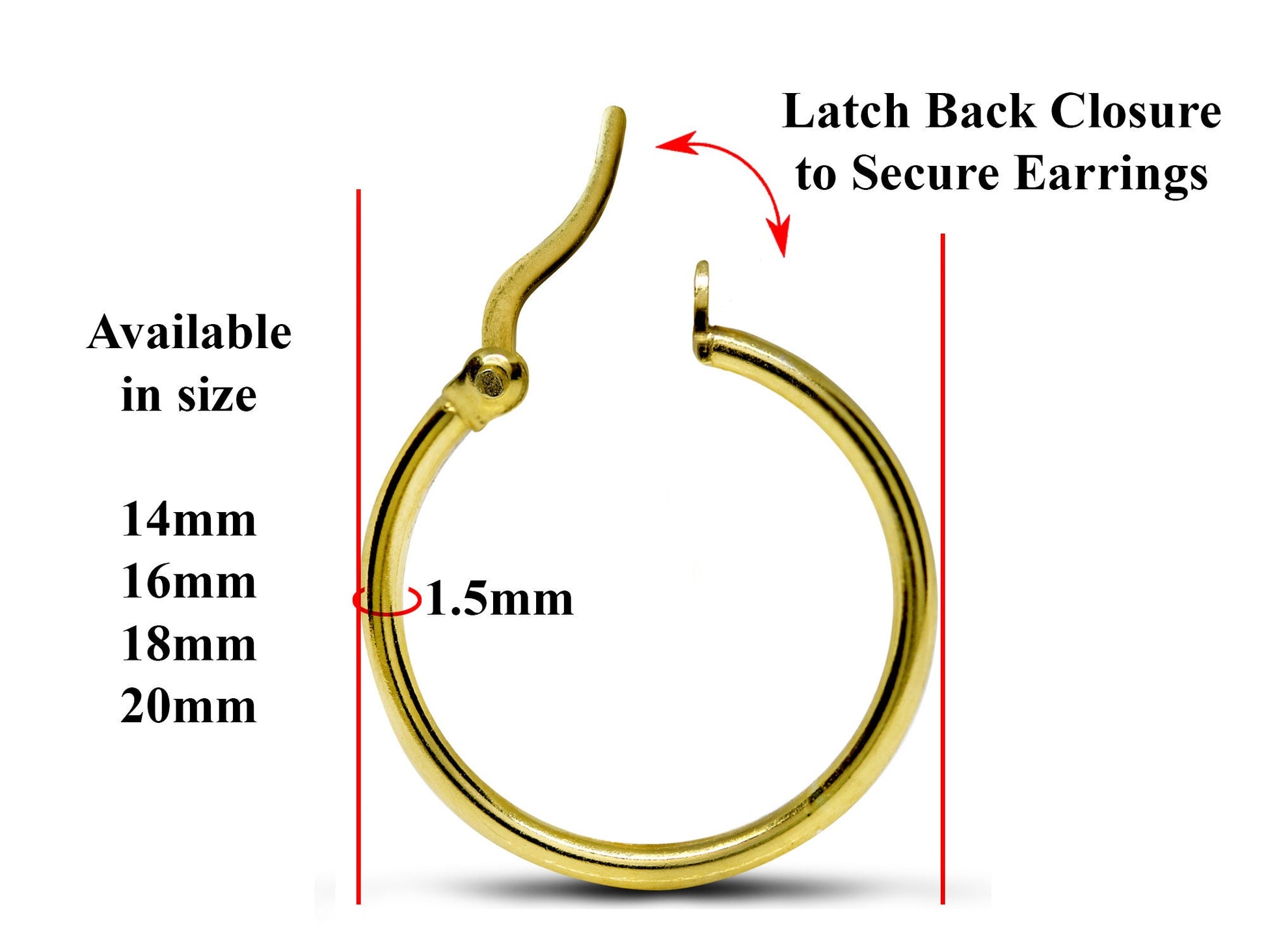 Silver Hoop Earrings - Latch Back Hoop Earrings for Women - Comes in Sizes of 14mm to 20mm - Silver, Gold, Rose Gold