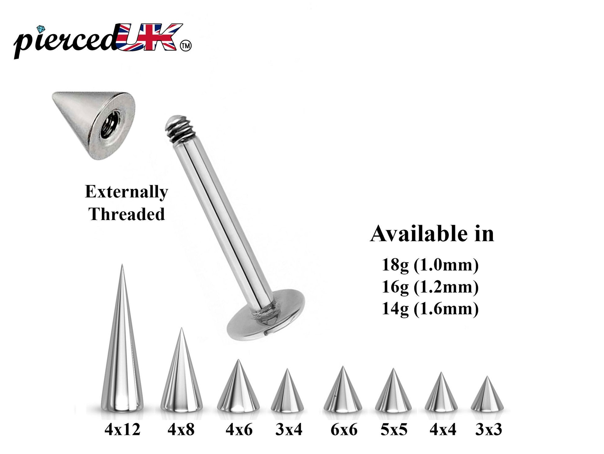 Spike Cone Barbell or Labret Body Piercing available 18g 16g 14g Labret Stud for Lip and Chin or Barbell Stud for Nose and Nipple Bar