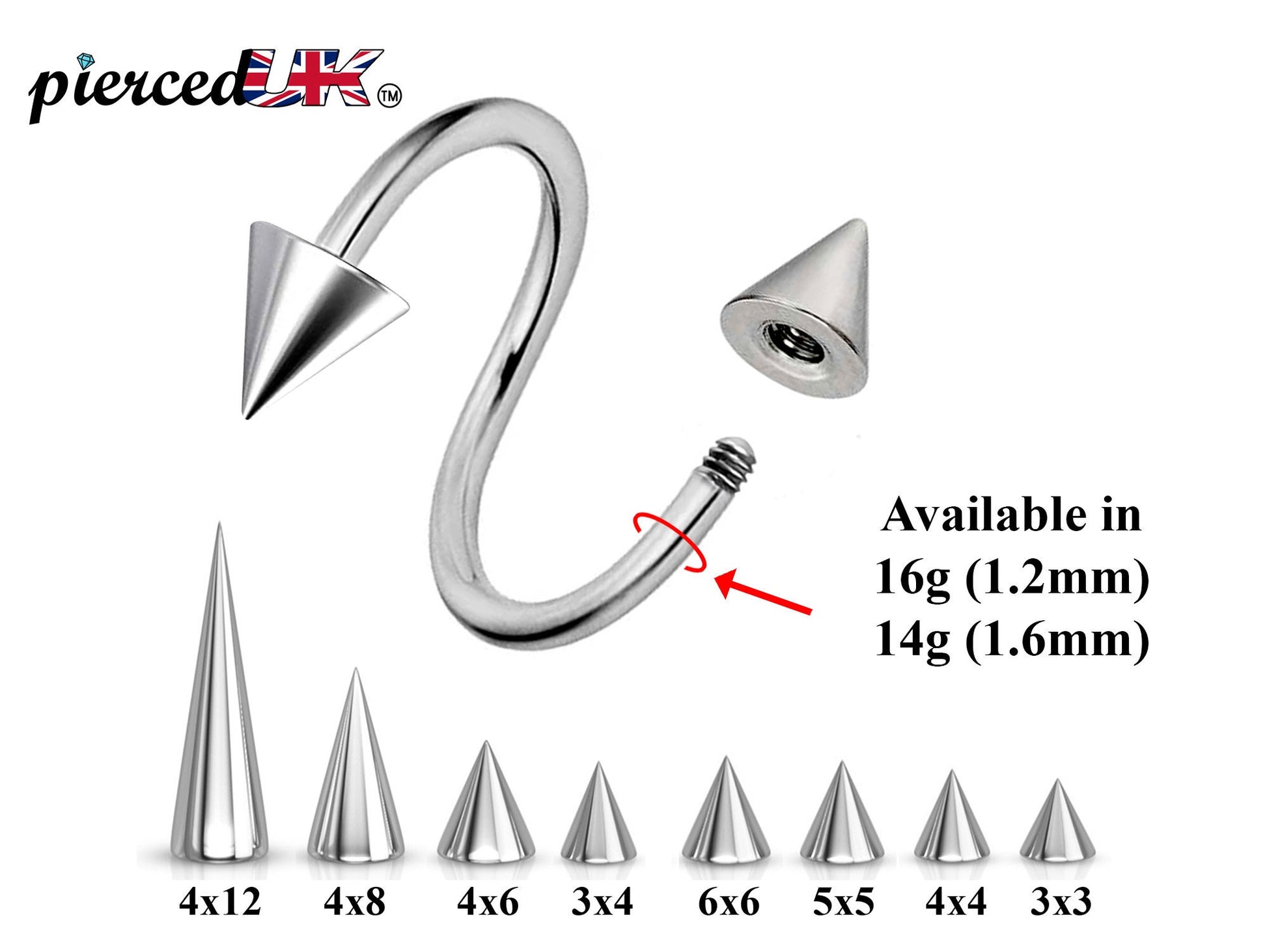 Spike Cone Spiral Barbell, Eyebrow Piercing, Nipple Piercing – Conch Earrings Body Jewellery – Twisted Barbell