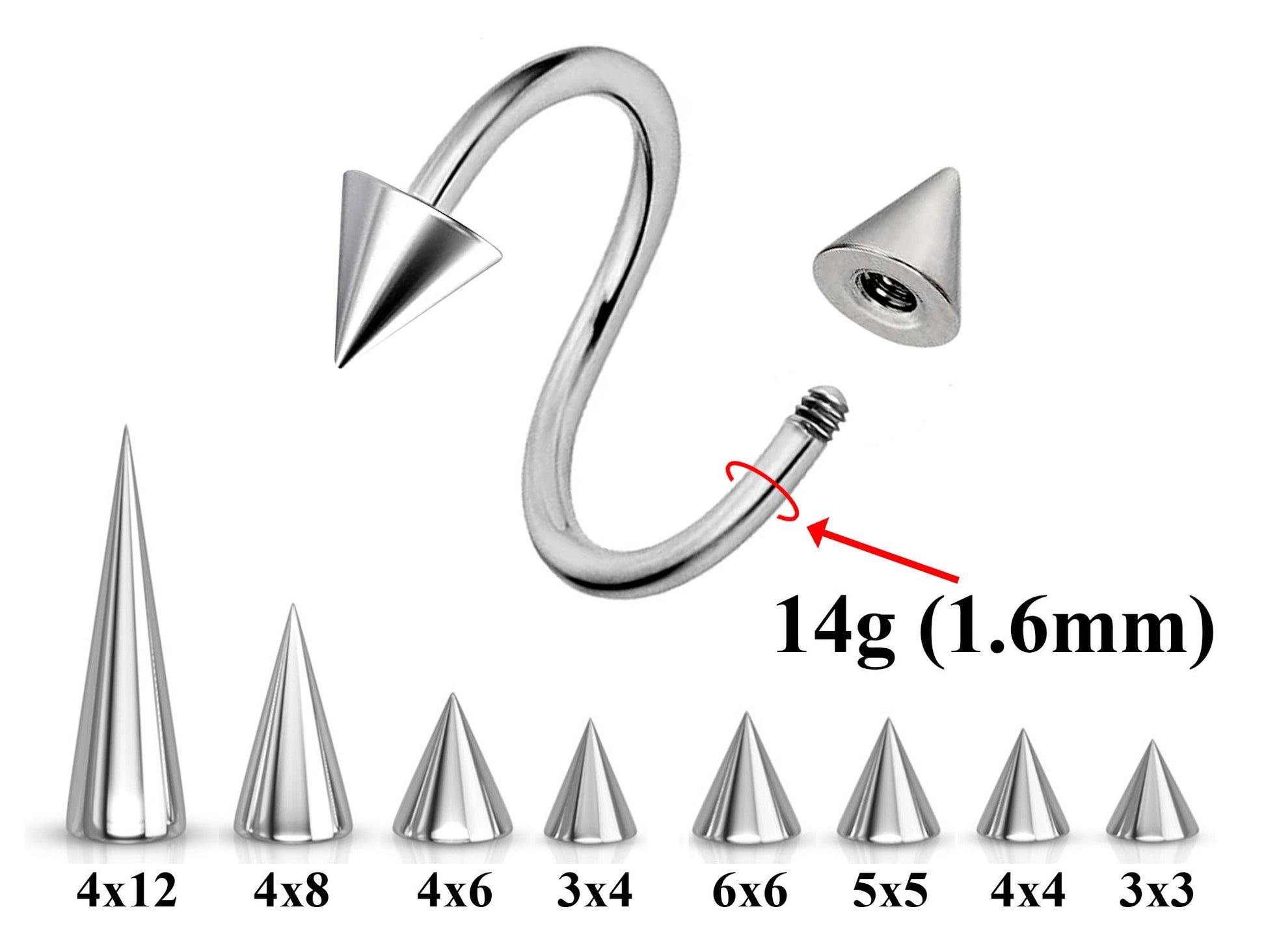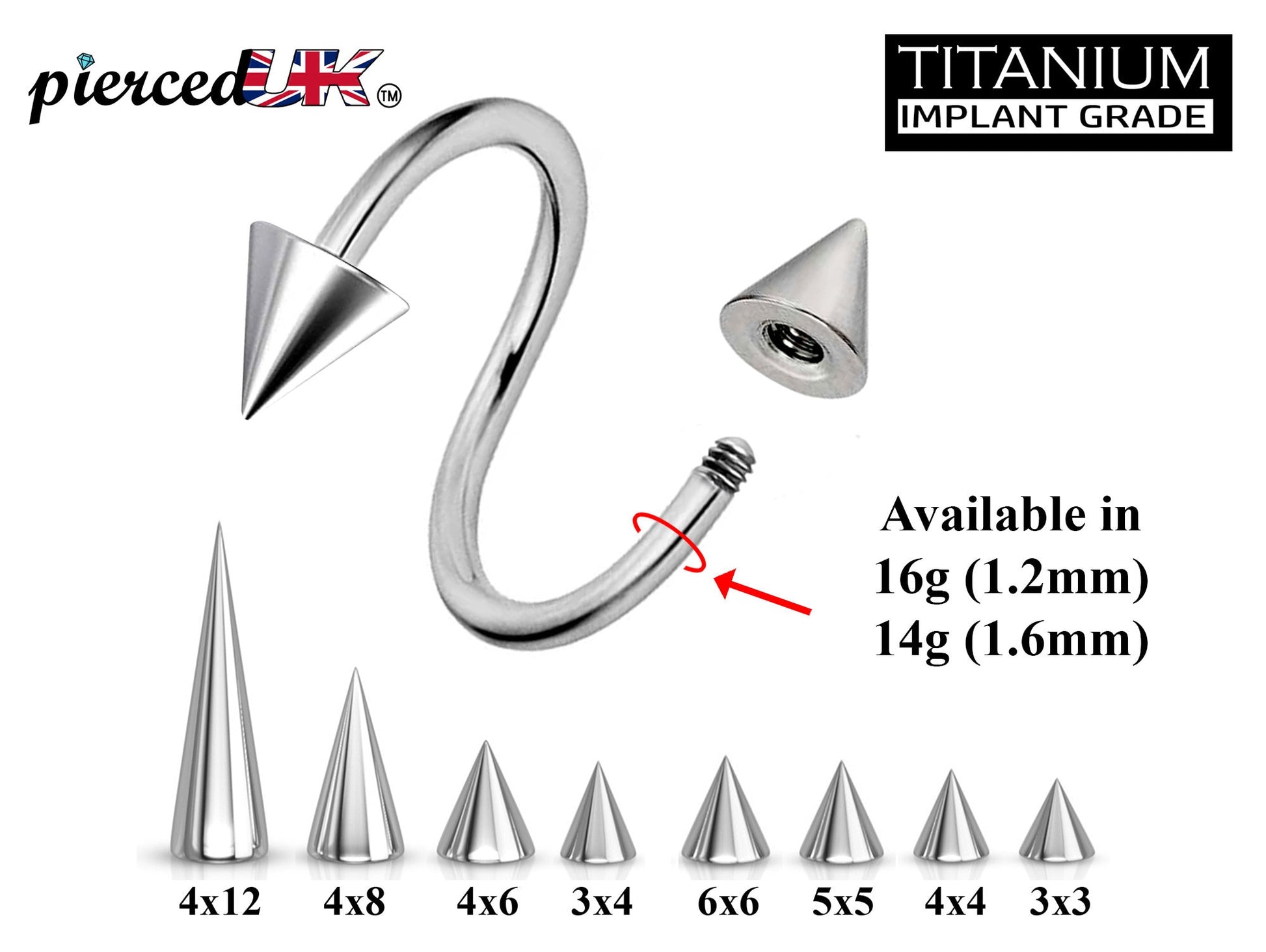 Spike Cone Titanium Spiral Barbell, Eyebrow Piercing, Nipple Piercing – Conch Earrings Body Jewellery – Twisted Barbell