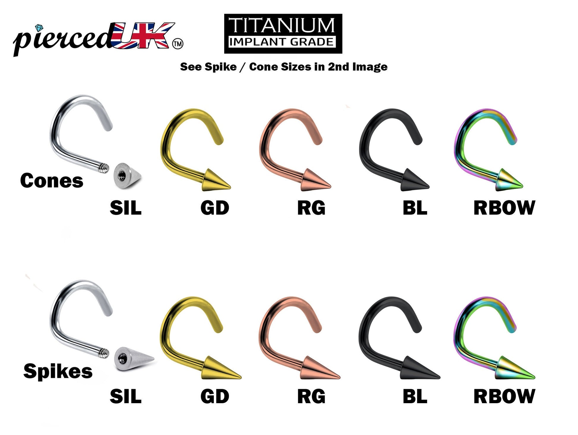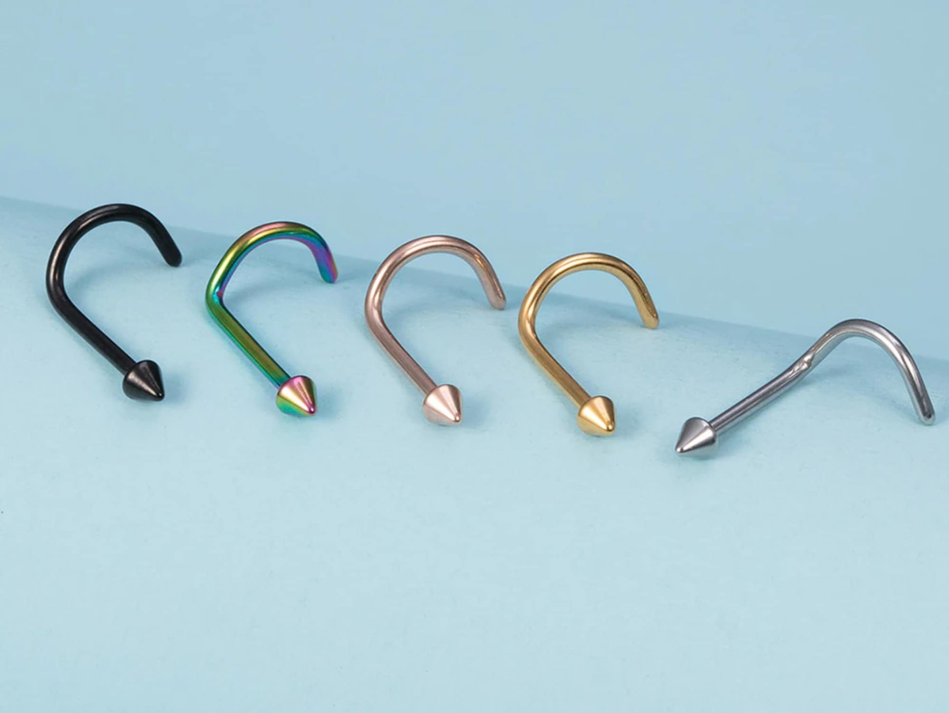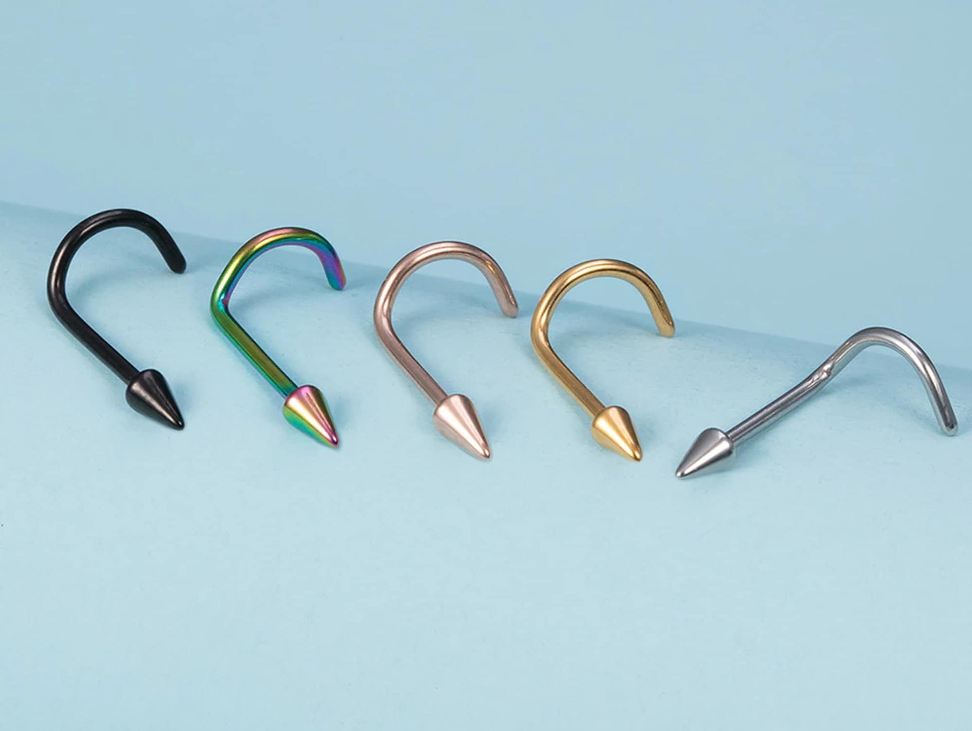 Spike Nostril Screw Ring, Cone Nose Studs Titanium Curved Nose Ring for Nose Piercing - 20g 18g 16g - Externally Threaded Nostril Jewellery