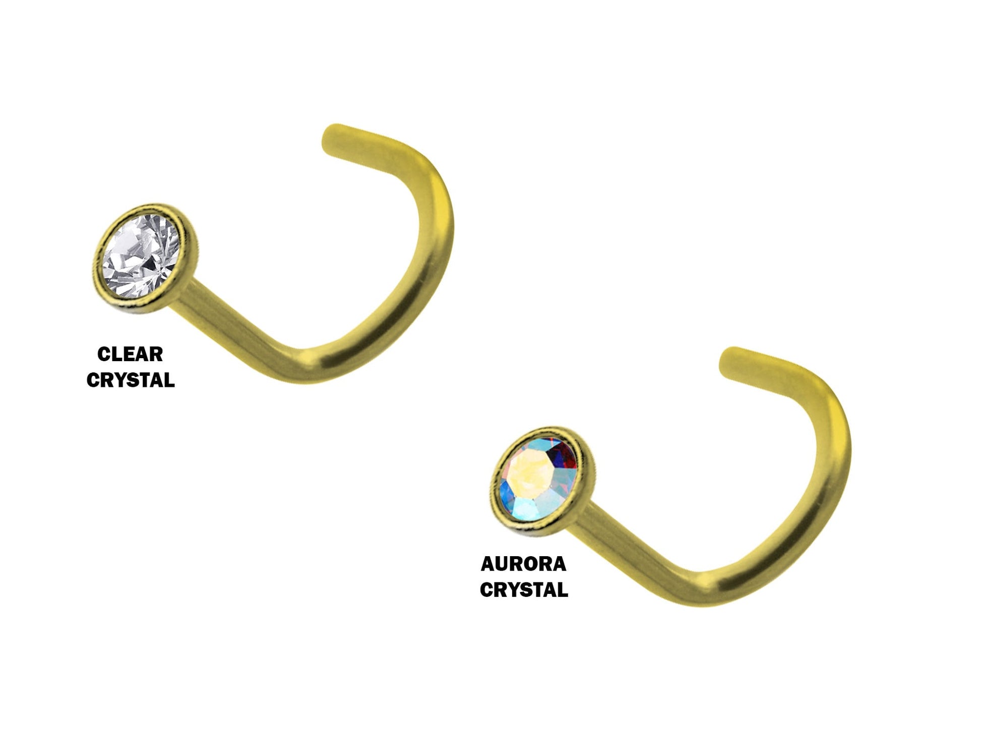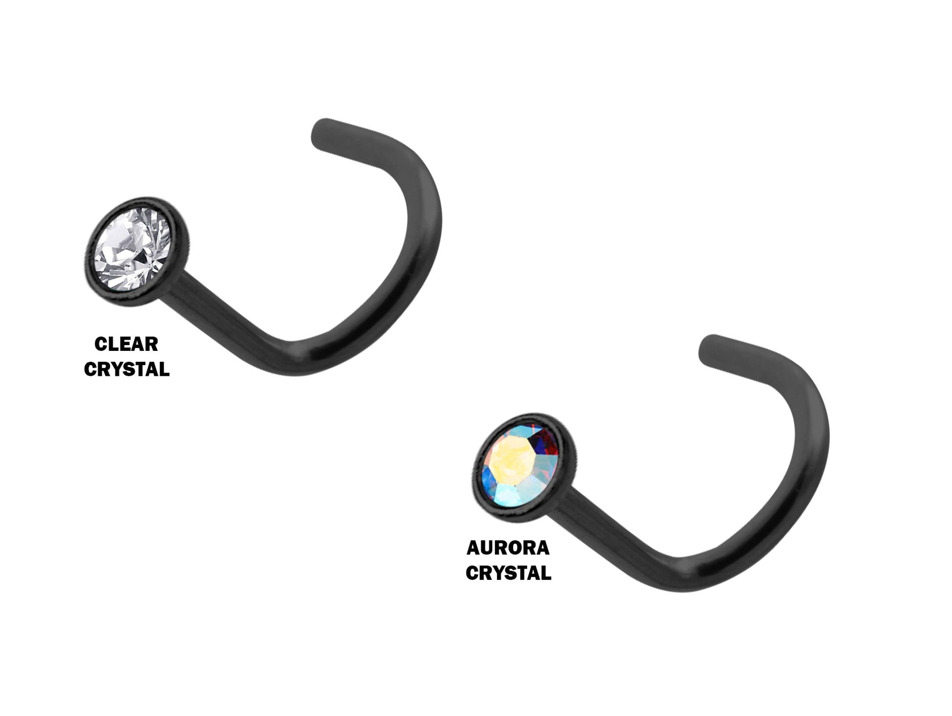 Titanium 18G Nose Studs, Nostril Screw Ring Black/Silver/Gold with Inlay Bezel Setting 2.5mm Crystal Nose Piercing, Nose Jewelry Length 8mm