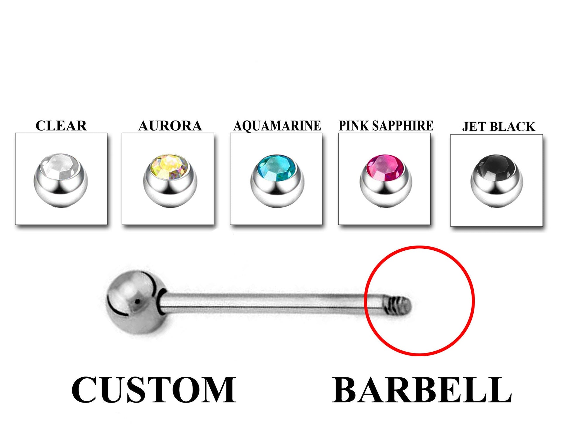 Titanium Barbell, Industrial Piercing - Customize Barbell Piercing in 20g to 14g - Spike - Gem Ball - Multi Stone - Disco Ball - Plain Ball.