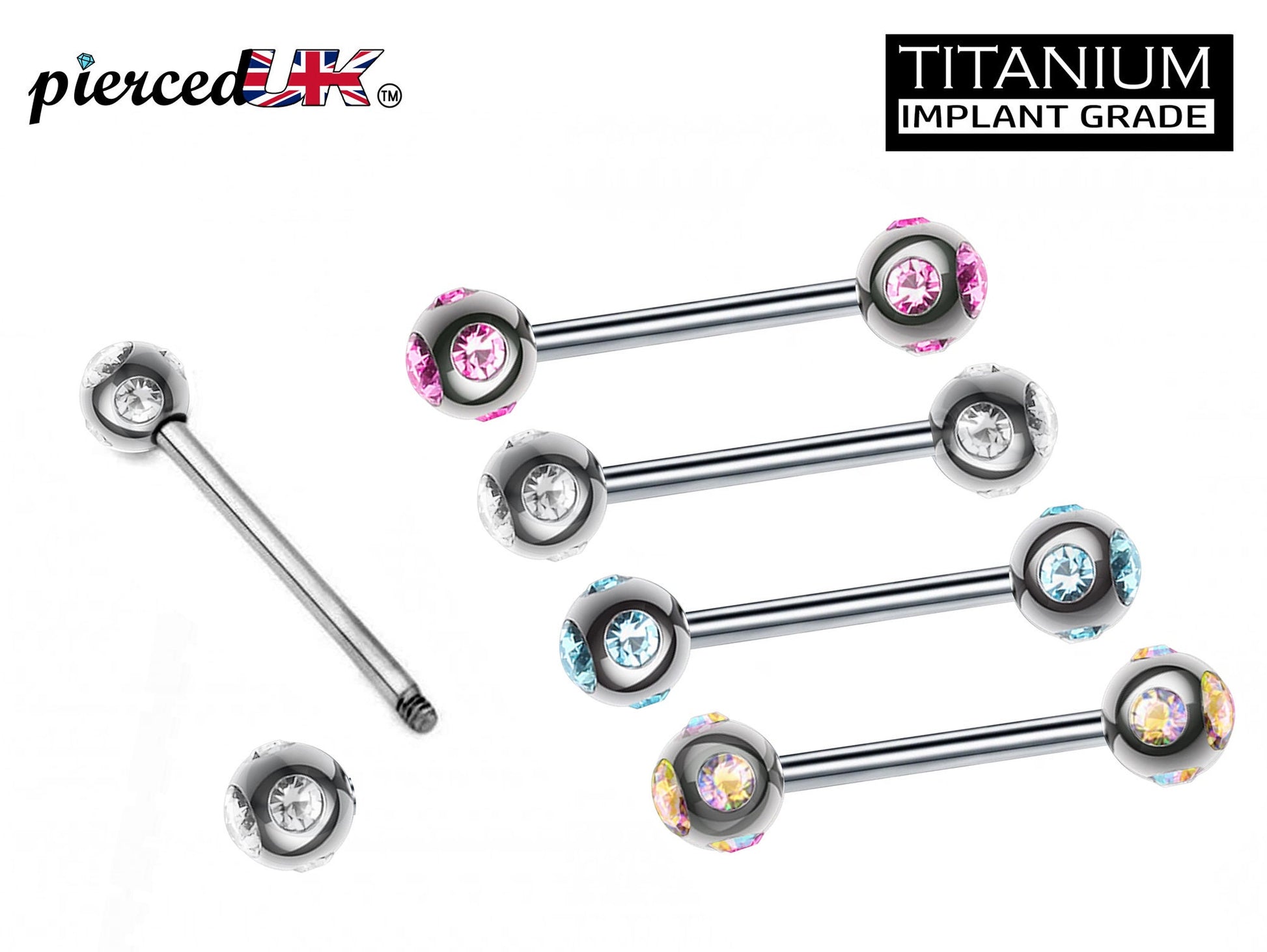 Titanium Barbell, Multi Stone Barbell Piercing – 16g, 14g – Piercing for Tongue, Nipple Piercing, Ears – Length from 6mm to 12mm