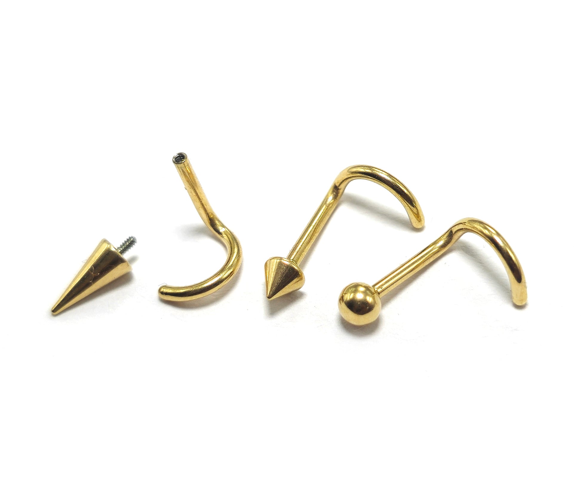 Titanium Gold Nose Stud Screw, Nostril Jewelry - 18G Internally Threaded in Ball Spike and Cones