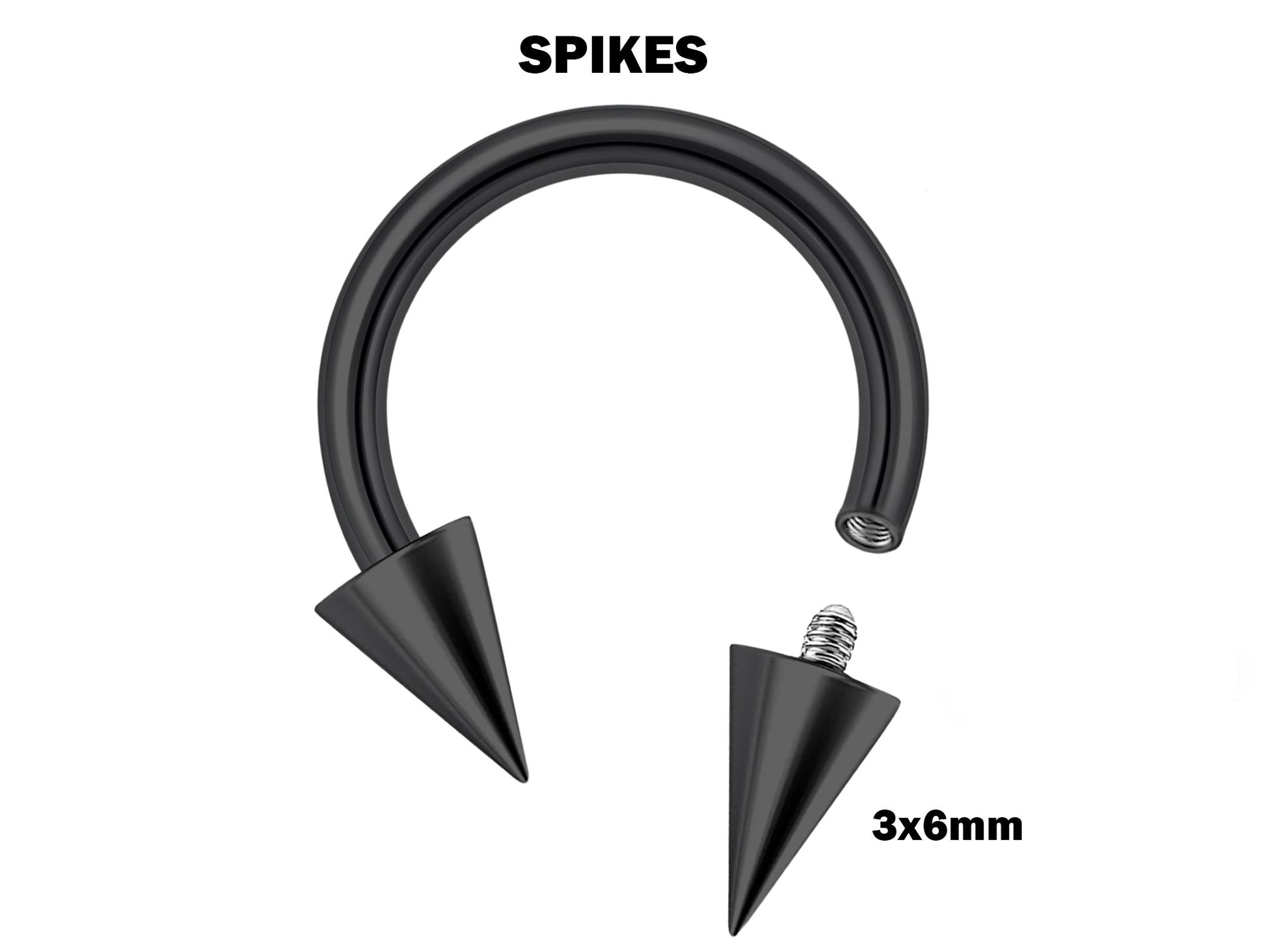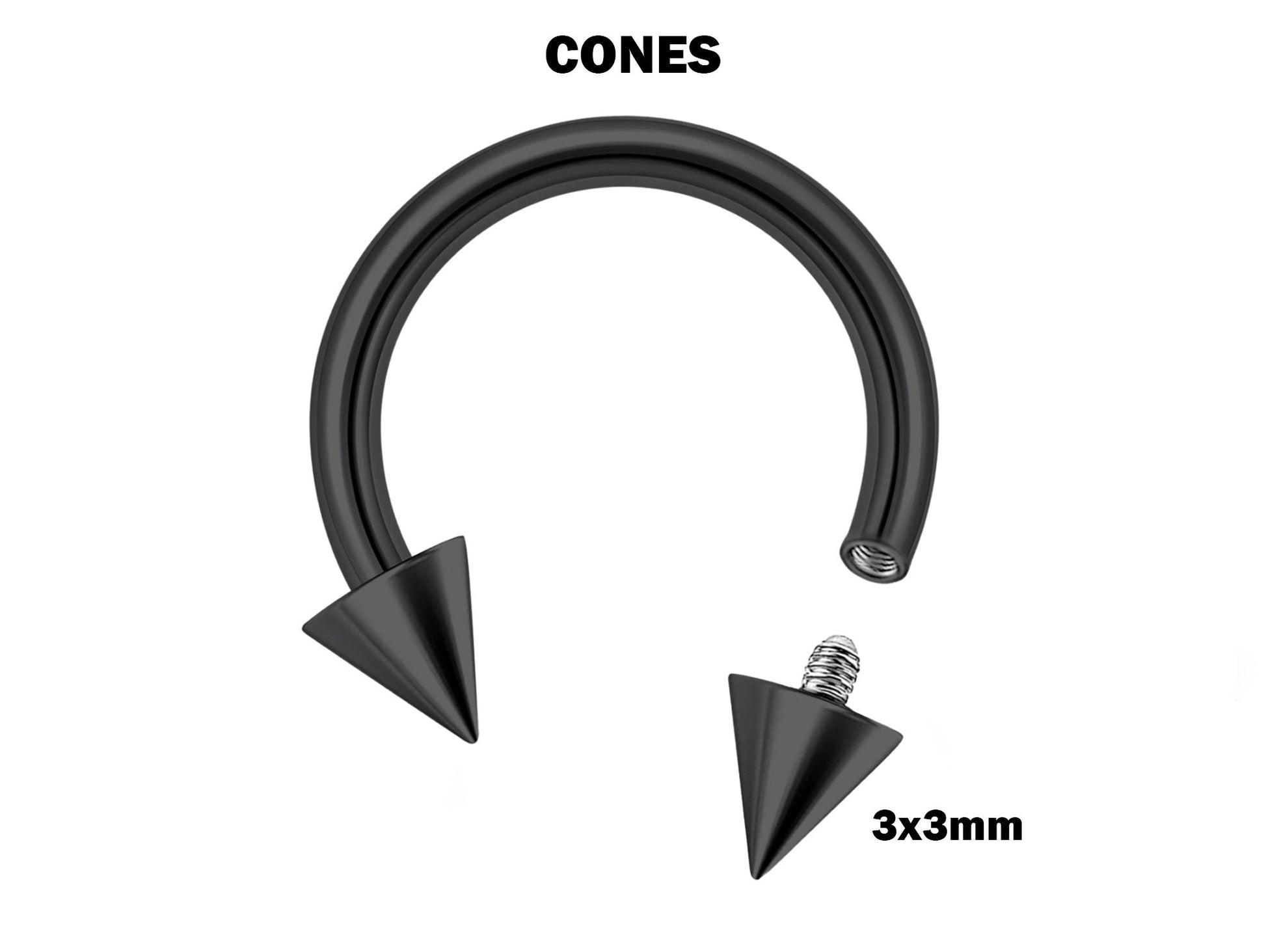 Titanium Cone/Spike Black Horseshoe Barbell, Septum Ring - 16G 14G Internally Threading Septum Jewelry - Nose Piercing, Helix, PA ring