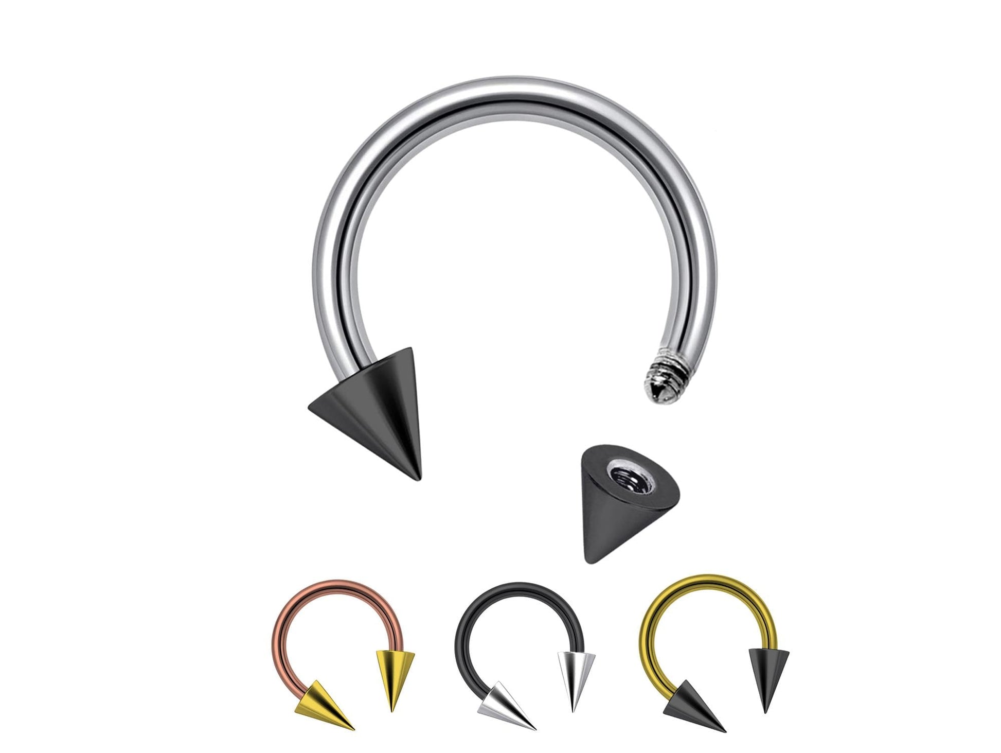 Titanium ConeSpike Horseshoe Barbell, Septum Ring - 16G 14G Externally Threading Septum Jewelry Nose Piercing, Helix, PA ring - sold in 1pc