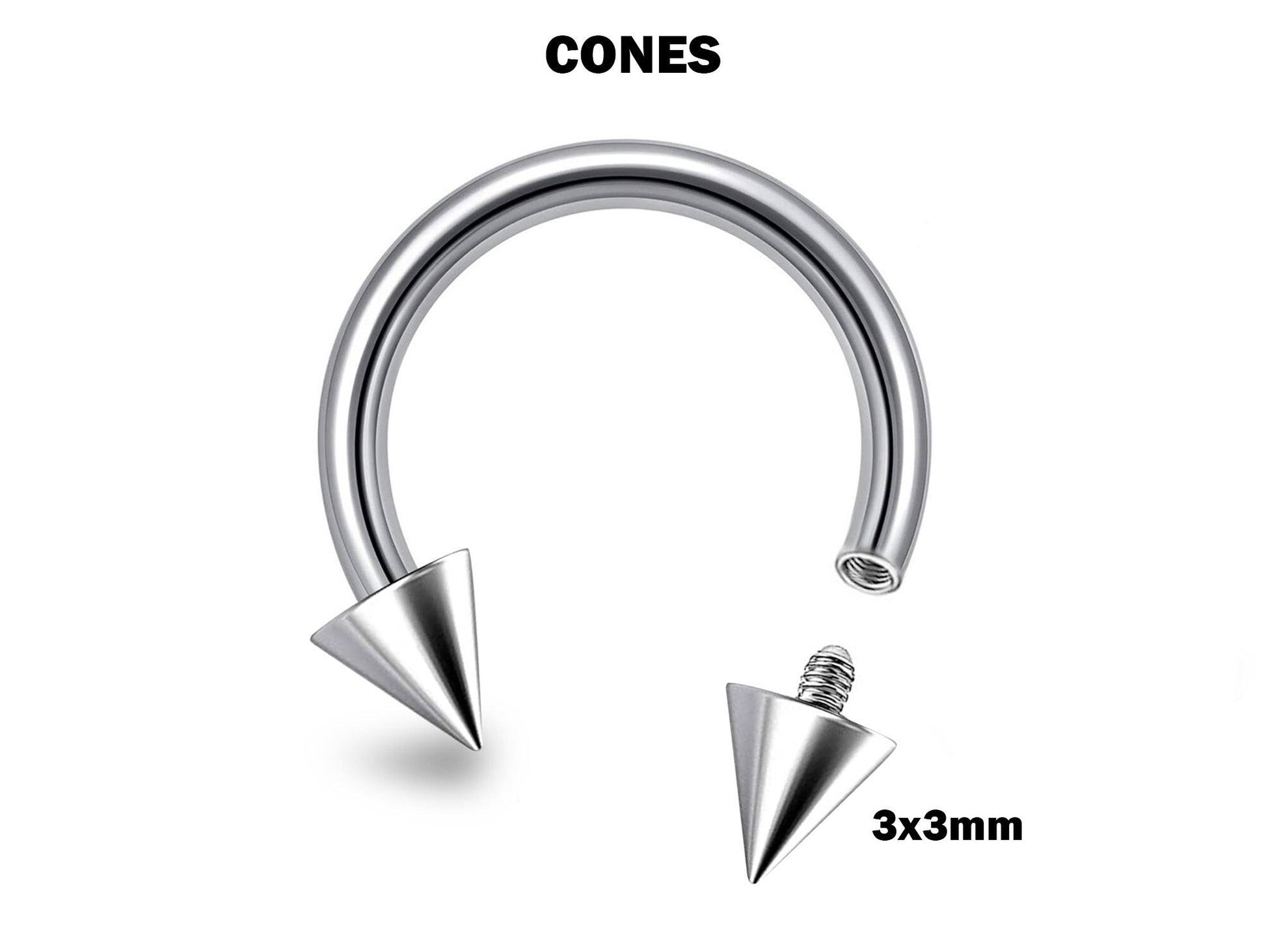 Titanium Cone/Spike Horseshoe Barbell, Septum Ring - 16G 14G Internally Threading Septum Jewelry - Nose Piercing, Helix, PA ring