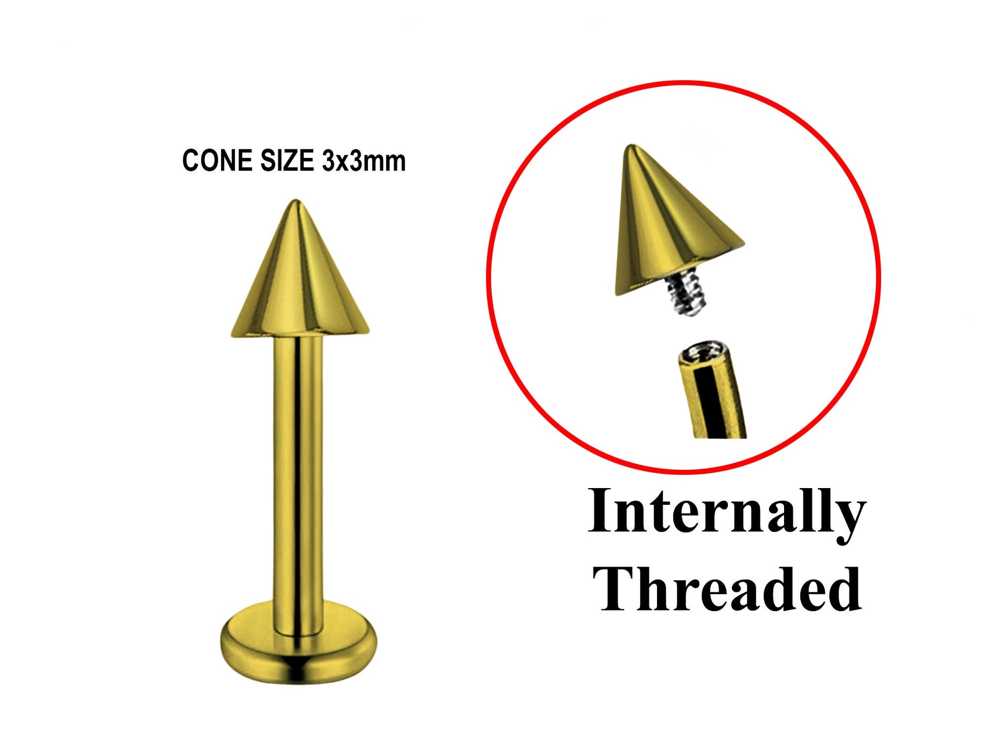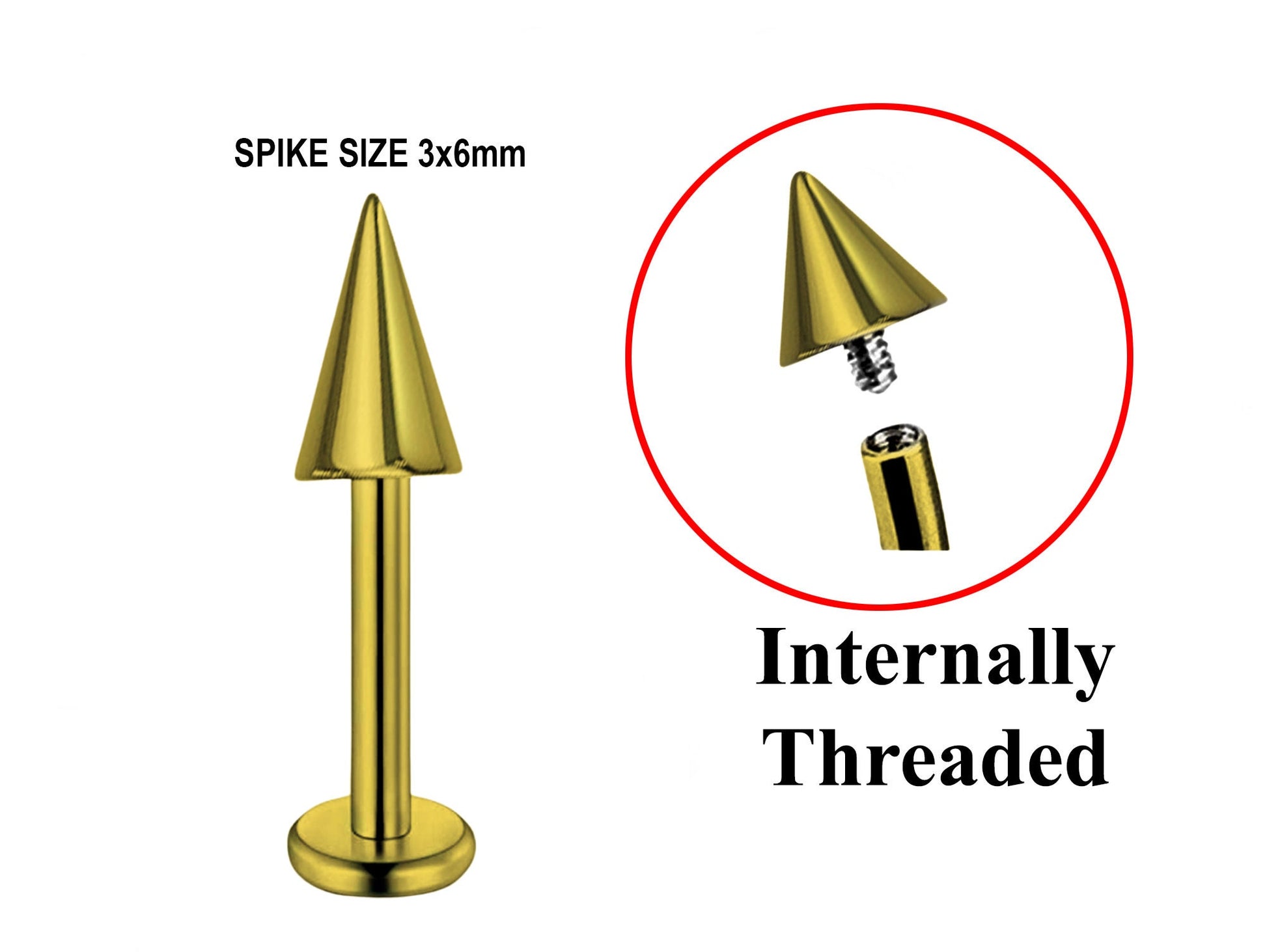 Titanium Gold Spike Labret, Labret Lip Piercing – 16G 14G Labret Cone Spike Piercing Internally Threaded