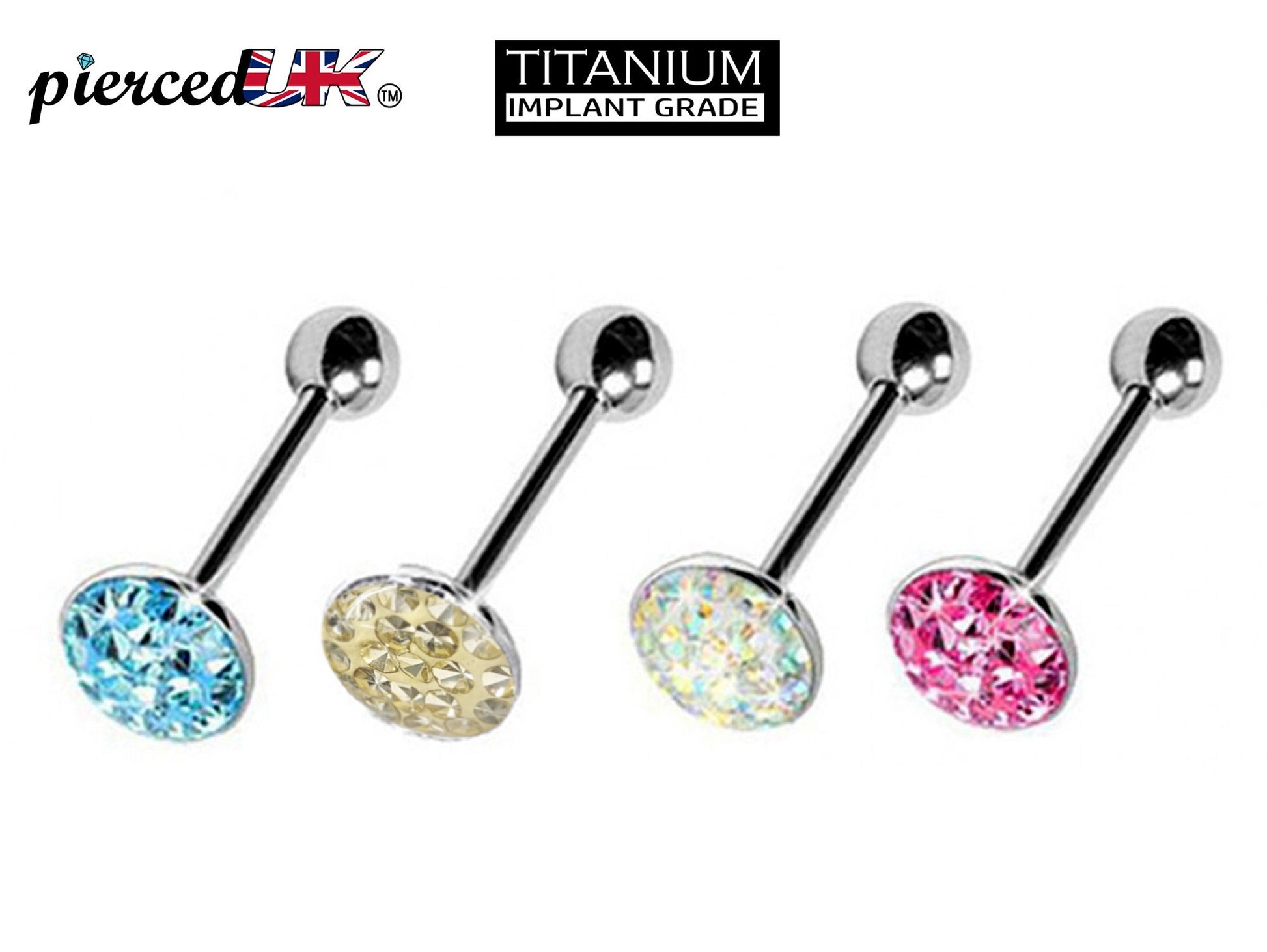 Titanium Tongue Bar, Barbell Piercing - 14g (1.6mm) Tongue Barbell with Flat top Coated CZ Crystals